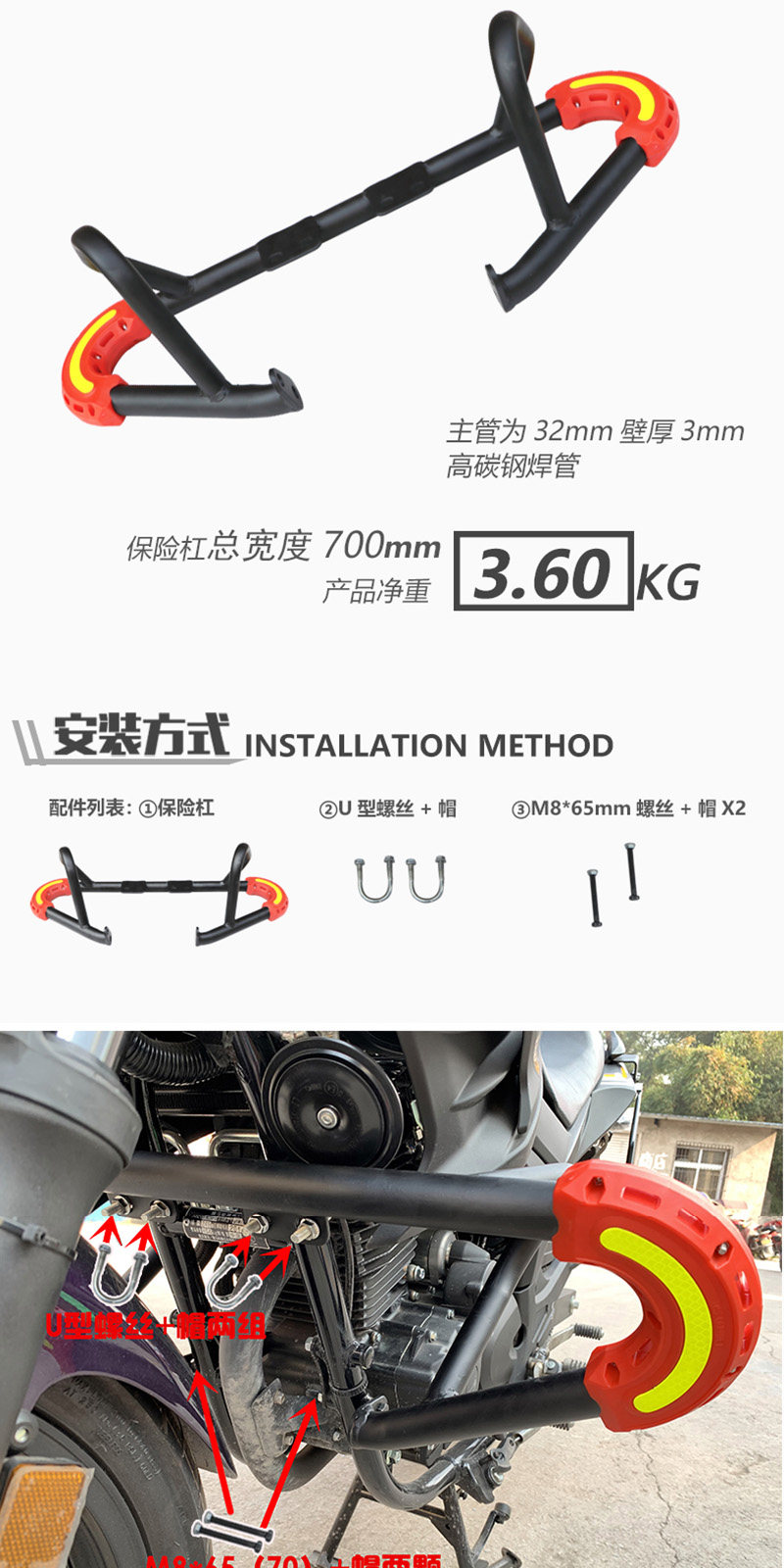 Подходит для бамперного бампера Yamahafei YS250 YBR250 Bumper Bummer Bummer Bump
