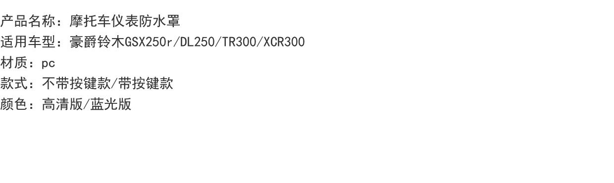 | Цвет: | GSX250R/DL250 HD приборной загрязнение воды [без кнопок], GSX250R/DL250 Синий свет приборной загрязнение воды [без кнопок], GSX250R/DL250 HD приборной загрязнение воды [с кнопками], GSX250R/DL250 Синий свет приборной загрязнение воды [с кнопками], TR300/XCR300 HD Инструментальная водонепроницаемая крышка [без кнопок], TR300/XCR300 Blue Light Инструментальная водонепроницаемая крышка [без кнопок], TR300/XCR300 Инструментальная приборная крышка с высоким разрешением [с кнопками], TR300/XCR300 Blue Light Инструментальная водонепроницаемая крышка [с кнопками] |