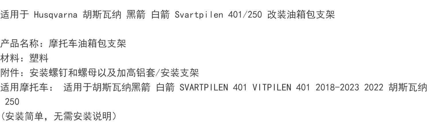 Подходит для Husqvarna Black Arrow White Arrow Svartpilen 401/250 Сумка для топливного бака