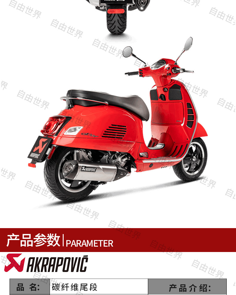Импортный Скорпион Акрапович Веспа ГТС/GTV300/Spring/Sprint 300 выхлопные хвост шесть дней
