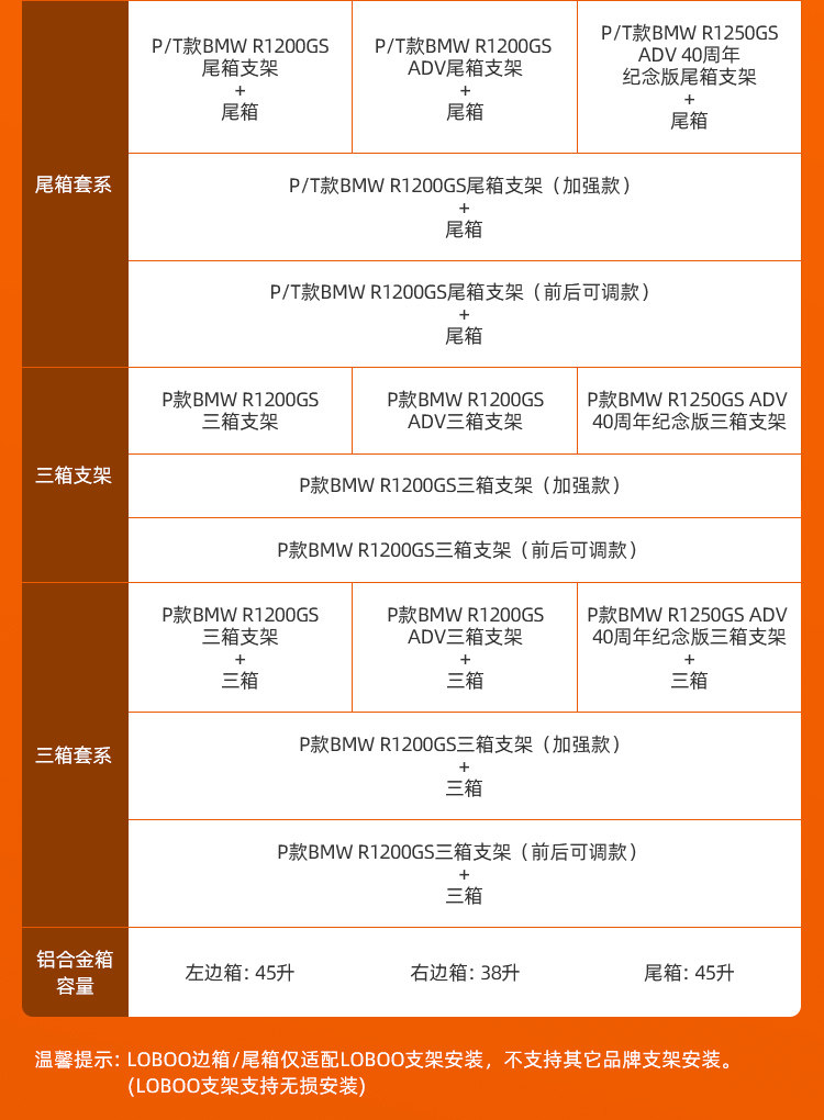 LOBOO Компания для водонепроницаемой и алюминиевого сплава мотоциклера BMW R1200GS/R1250GS ADV Три коробки
