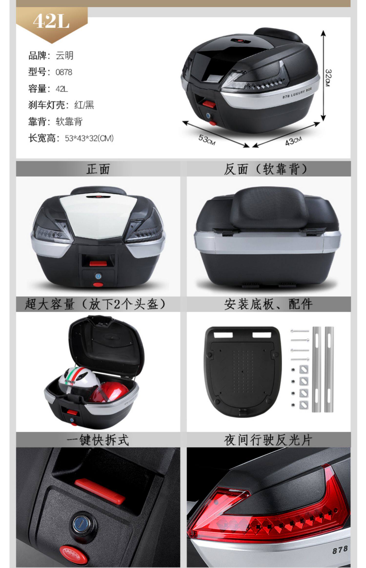 Yunming 878 Tail Box Motorcycle Trunk Fast -Disasassembly увеличивает емкость электрическая батарея с утолщенным набором набора инструментов для хранения автомобиля