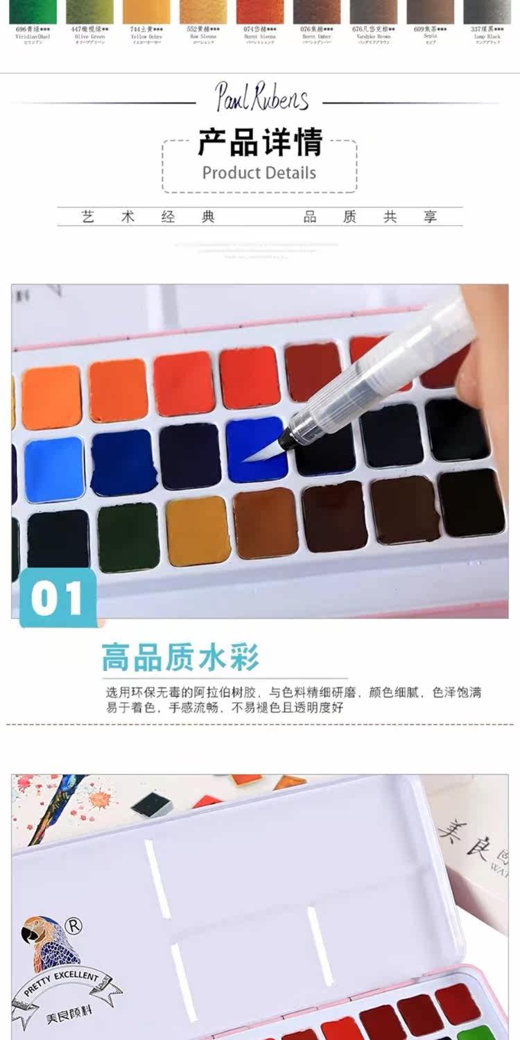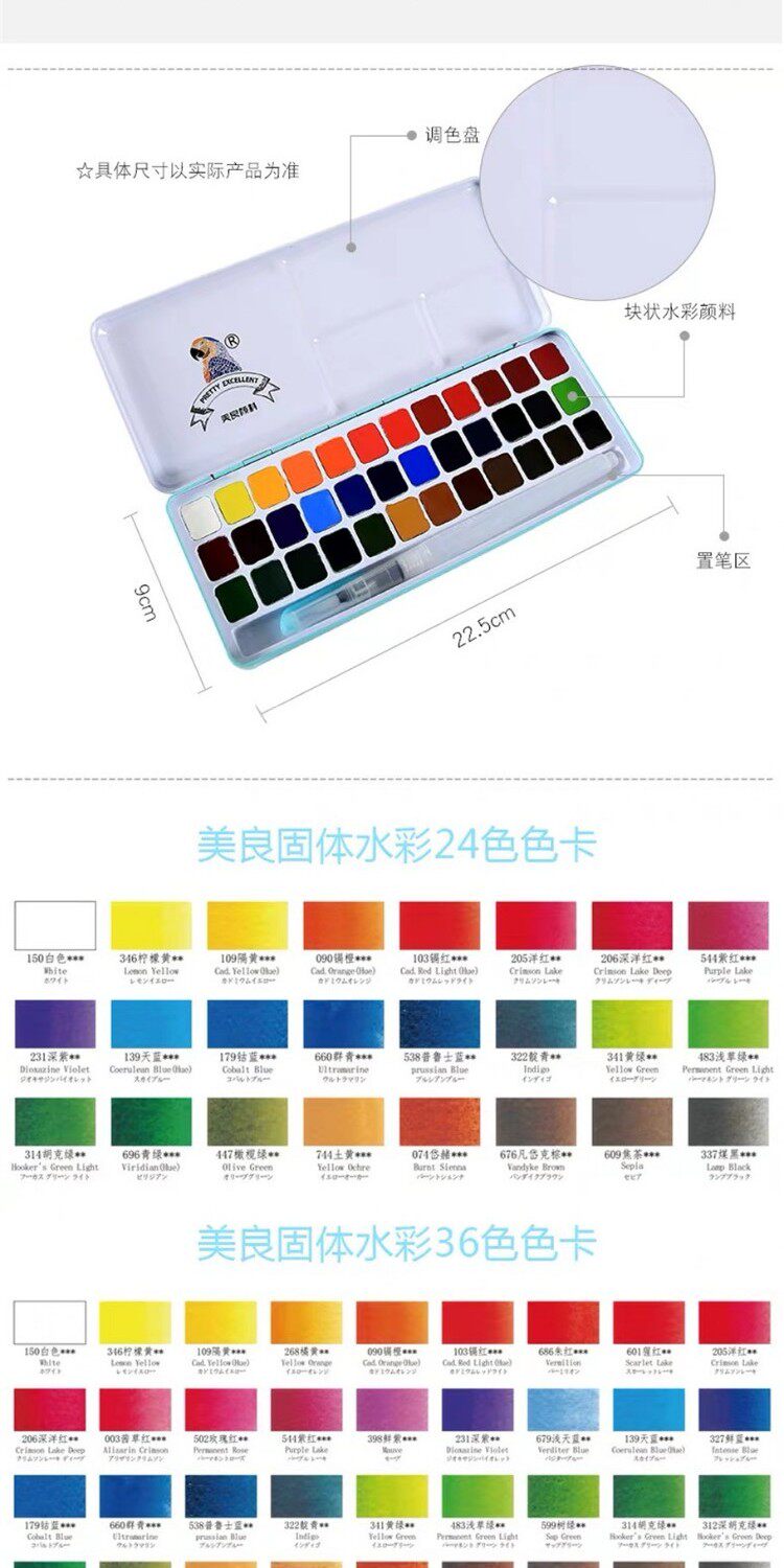 Пигментированная акварель, художественный комплект, 2436 цветов, подходит для начинающих, ручная роспись
