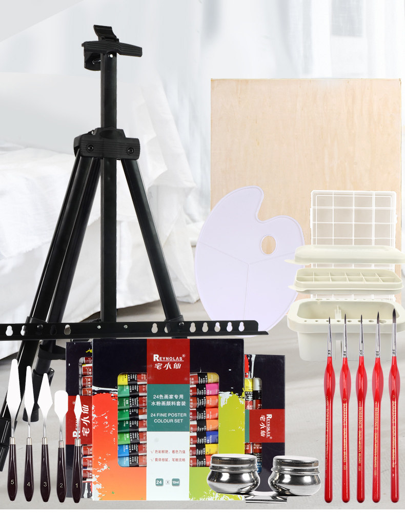Пигментированная гуашь, художественный комплект для начинающих, детская профессиональная треугольная акварель для школьников и студентов, штатив, 24 цветов, полный комплект