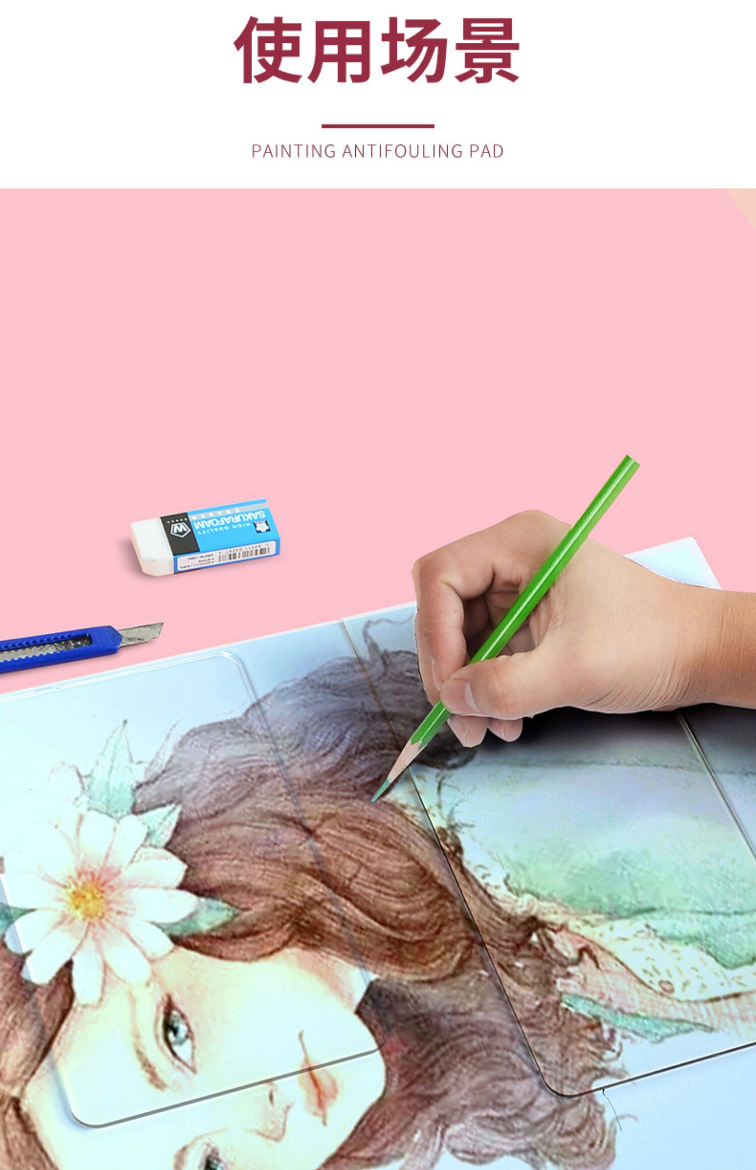 Восемь -деся -магазин магазин трех цветных набросков прозрачной панели прозрачной накладки рисовать анти -дирту -рискованную подушку эскиз ручной