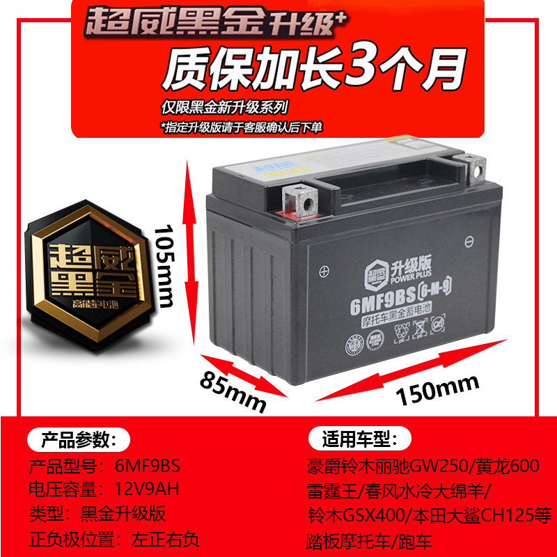 Батарея мотоцикла chaowei ytx9-bs Бесплатная техническая батарея gw250 huanglong 600xjr400 батарея 12V9A
