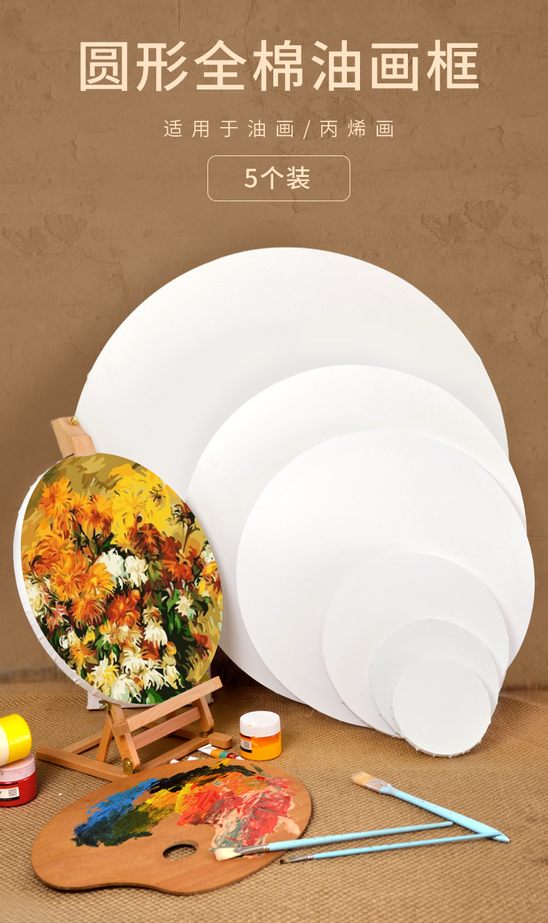 Круглая фоторамка для рисования, холст, практика, пигментированный акрил, деревянная хлопковая бумага для рисования, 5 шт, оптовые продажи