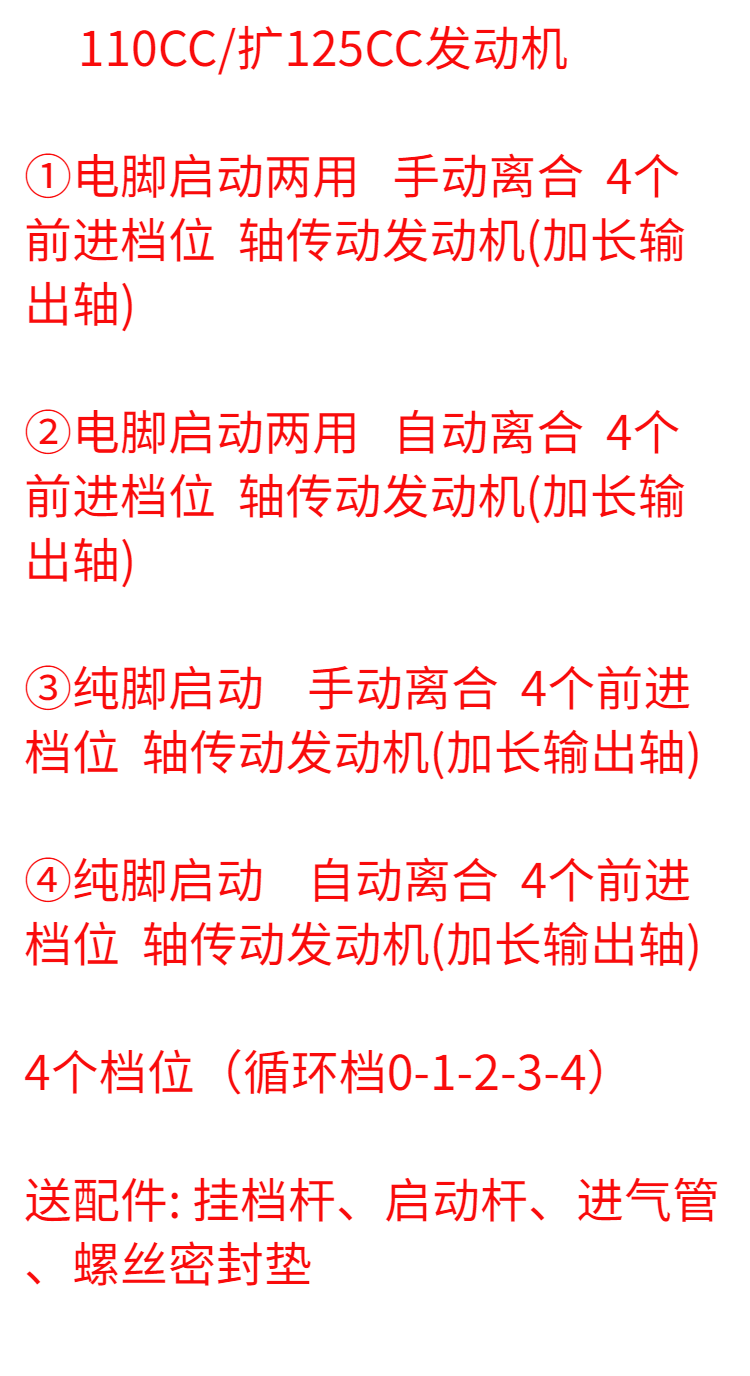 | Цвет: | Электрическая нога 110 куб., 125 куб. См Алюминиевый цилиндр Электрическая нога запускает механизм трансмиссионного двигателя ручного сцепления., Электрическая нога 110 куб., 125 куб. См Алюминиевого цилиндра Электрический запуск, 110 куб. См Pure Foot начинает ручной трансмиссионное двигатель с муфтом, 125 куб., Автоматическая трансмиссионная трансмиссионная моментальная трансмиссия с чистыми ногами 110 куб., 125 куб., Теплый предполагает, что двигатель не содержит обратную передачу |