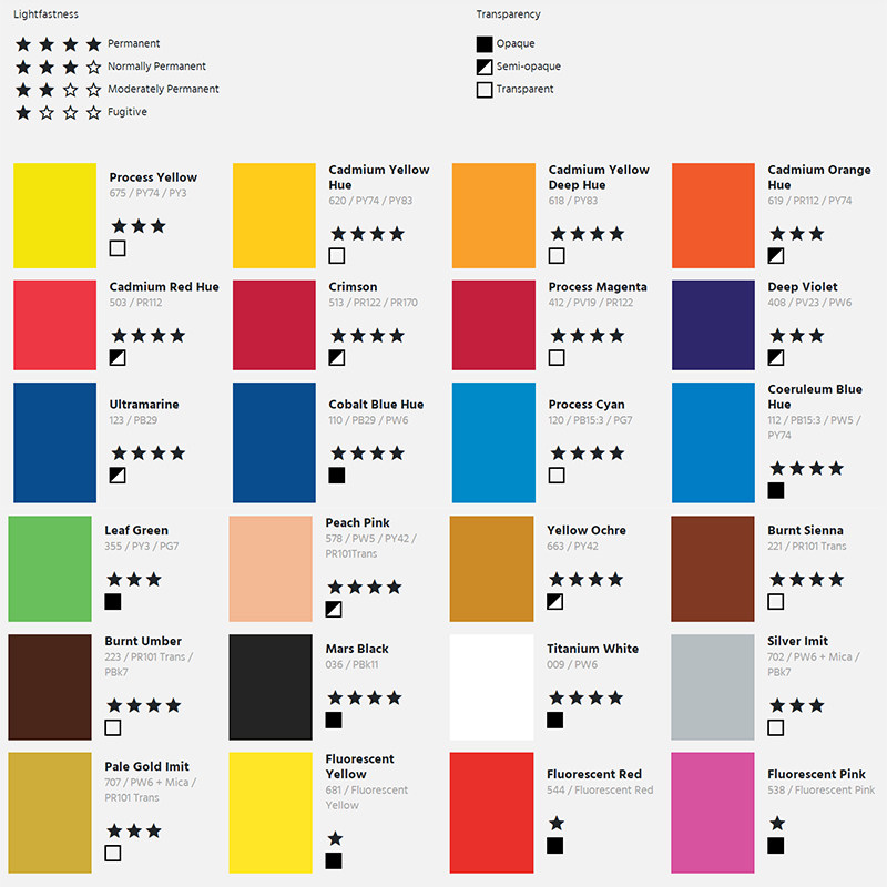 | Цвет: | Proton Printing Green 120, Печать печати красный 412, Proton Printing Yellow 675, Титановый белый 009, Кадмий желтый тон 620, Глубокий кадмий желтый тон 618, Кадмий апельсиновый тон 619, Кадмий красный тон 503, Темно -красный 513, Deep Purple Roland 408, Кунцинг 123, Кобальт синий тон 110, Sky Blue Tune 112, Лист зеленый 355, Мясо розовое 578, Земля желтая 663, LUO SHI 221, Приготовленный коричневый 223, MAS Black 036, Светлый золотой тон 708, Имитация Серебро 702, Флуоресцентный желтый 681, Флуоресцентный красный 544, Флуоресцентный розовый 538 |