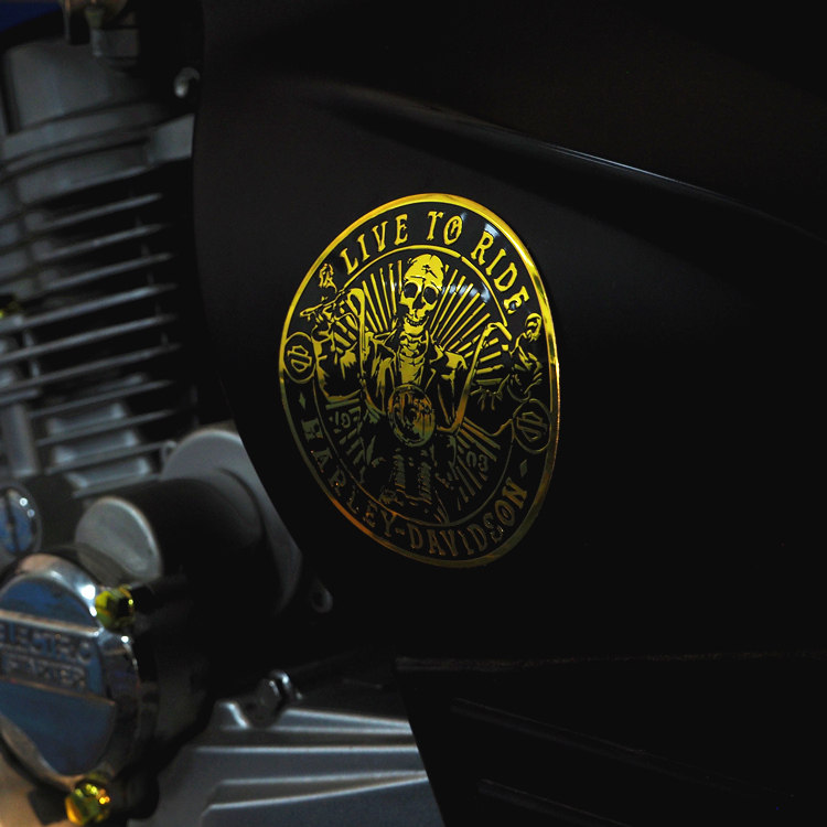Электрический мотоцикл украшение TR300 Металлическая наклейка ретро -шлем шлема для барбекю.