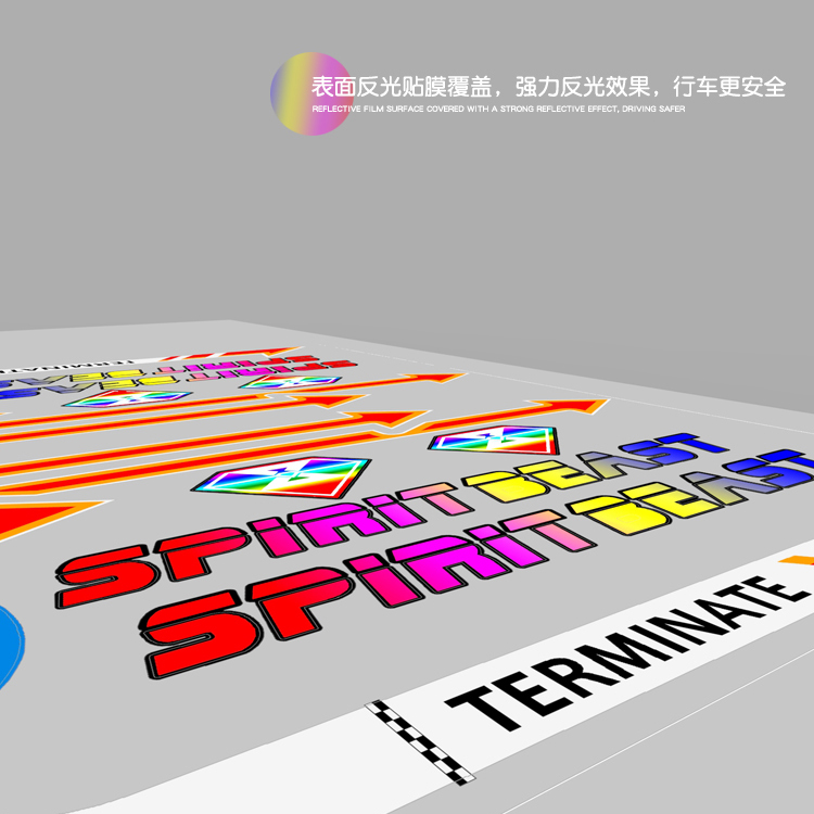 Характеристики продукта: принять импортируемые отражающие материалы, слой ПВХ пленки на поверхности, состоящий из тонкого пленочного слоя с хорошей производительностью, небольшого слоя стеклянных бусин, слой фокусировки, рефлекторного слоя, клея и слоя пилинг, цветной печати и хорошей резки.