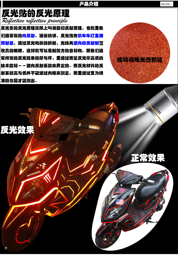 |   Описание: | Отражение не от светящегося или светящегося!Цвет отражающего материала глубже при естественном свете, и он станет более светлым цветом под отражением источника света.Такие, как отражающий белый цвет, цвет при естественном свете не является белым, но серебряным серебряным белым. Только источник света в темной среде станет ослепительным чистым белым.Отражающая наклейка ослепительна. Нормальный эффект:В течение дня нет отражающего эффекта.Он может иметь декоративный эффект, доминирующий и очаровательный, полный силы! Отражающий эффект:В темной ночи или в темном углу он освещается светом или сильным светлым фонариком, или вы можете увидеть эффект!Это играет предупреждающую роль (похожую на предупреждающий знак), безопасно и сопровождает! | |