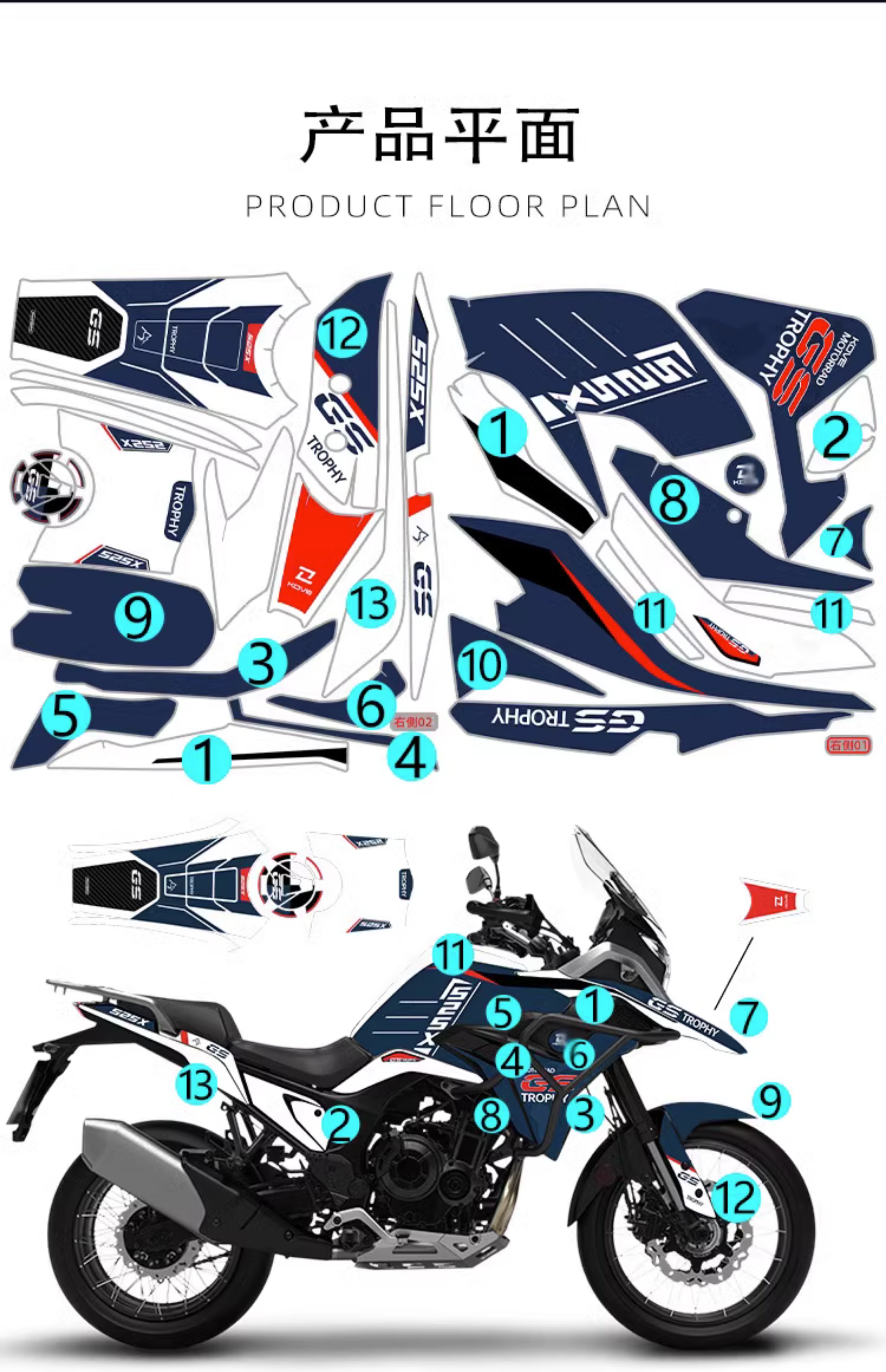 Применимо к Kove Capital 525x Полная автомобильная версия аксессуаров для модификации цветов водонепроницаемые наклейки, окрашенная пост цветочная версия рисовать пленки