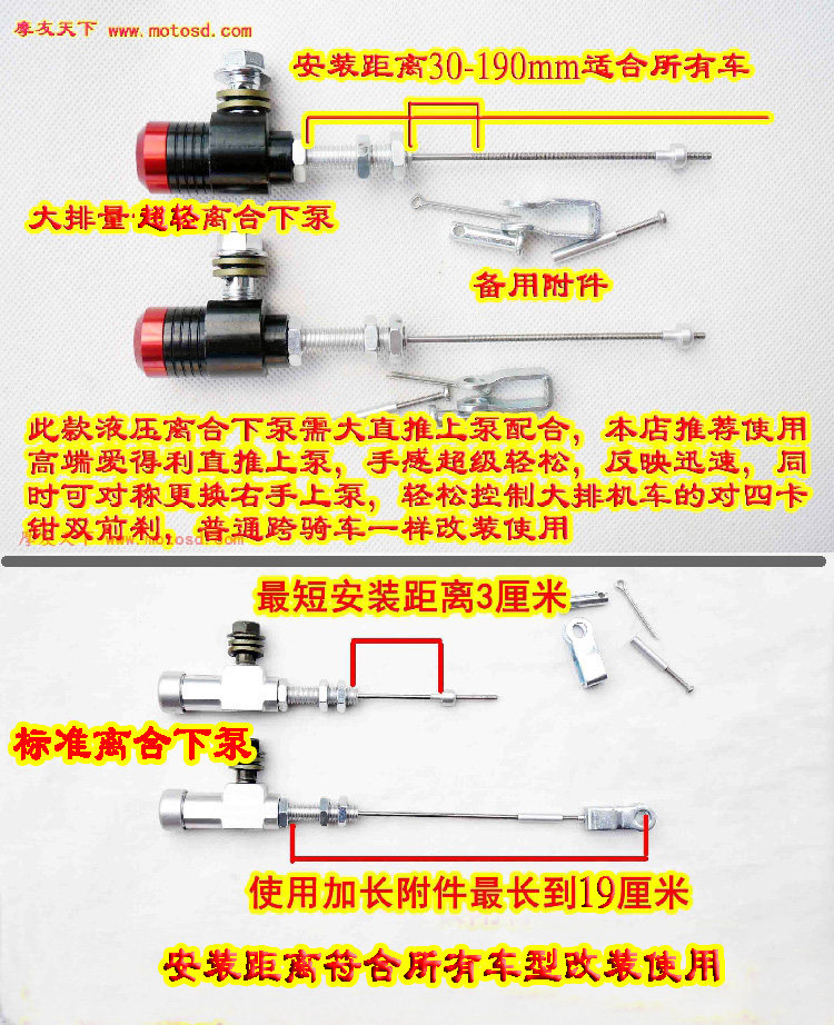 На рисунке ниже представлен комплект гидравлических сцепления слева. Обычно используемая уличная автомобильная труба длиной 1 метра. Пожалуйста, оставьте сообщение, если вам нужна другая длина или цвет масляной трубы.