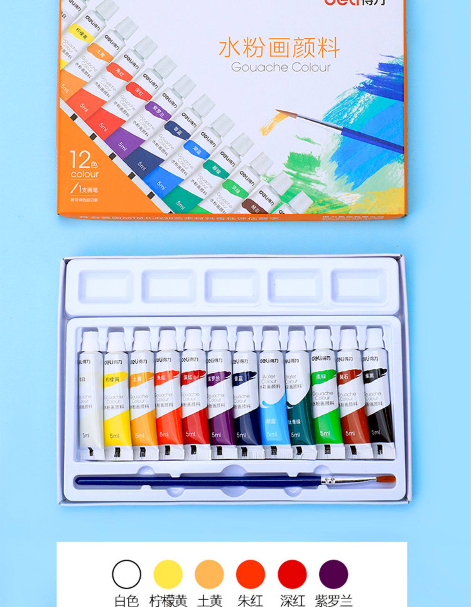 - Гуашь, комплект, 12 цветов, 5 мл, 12 шт