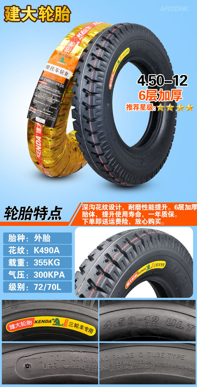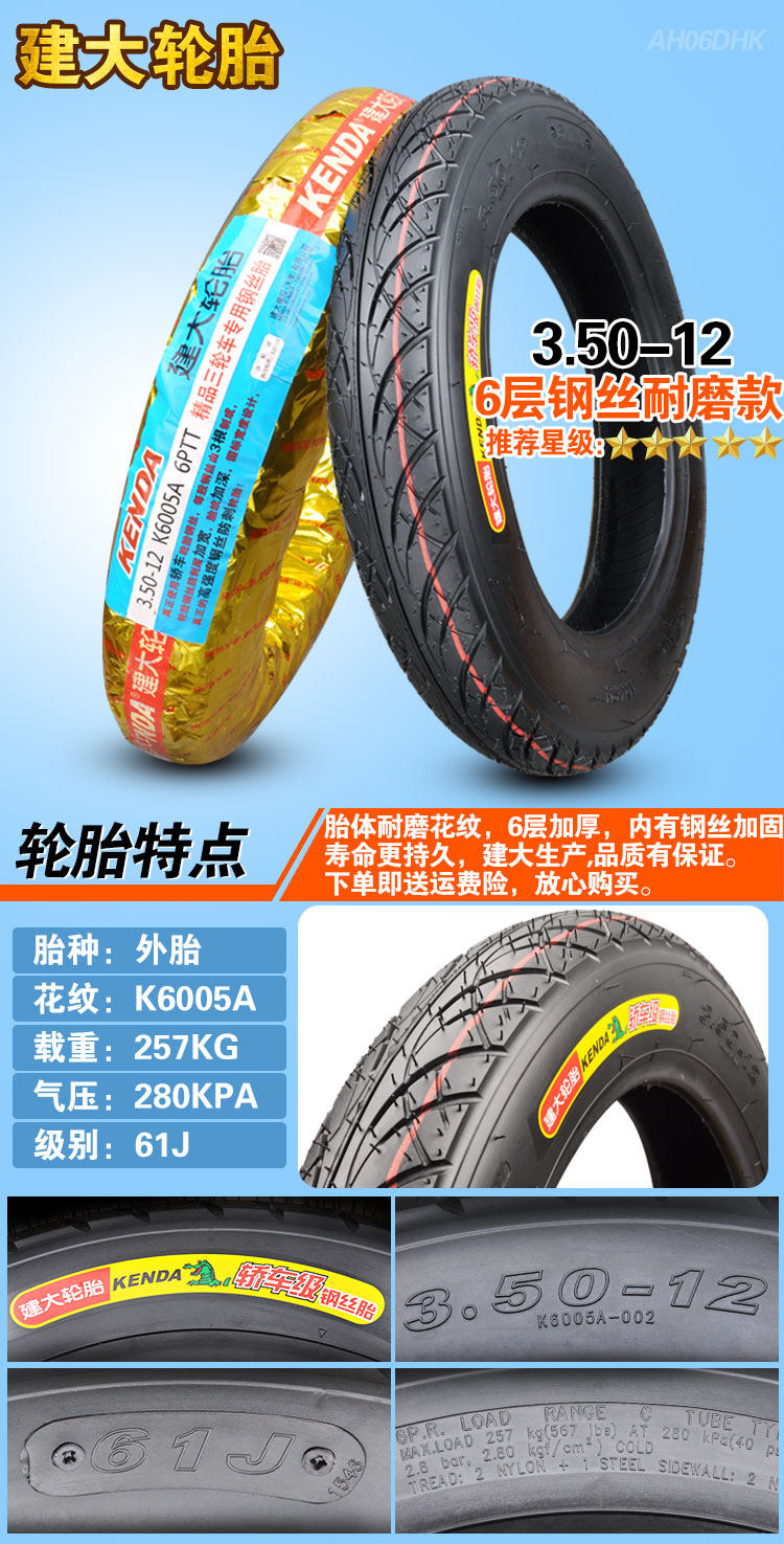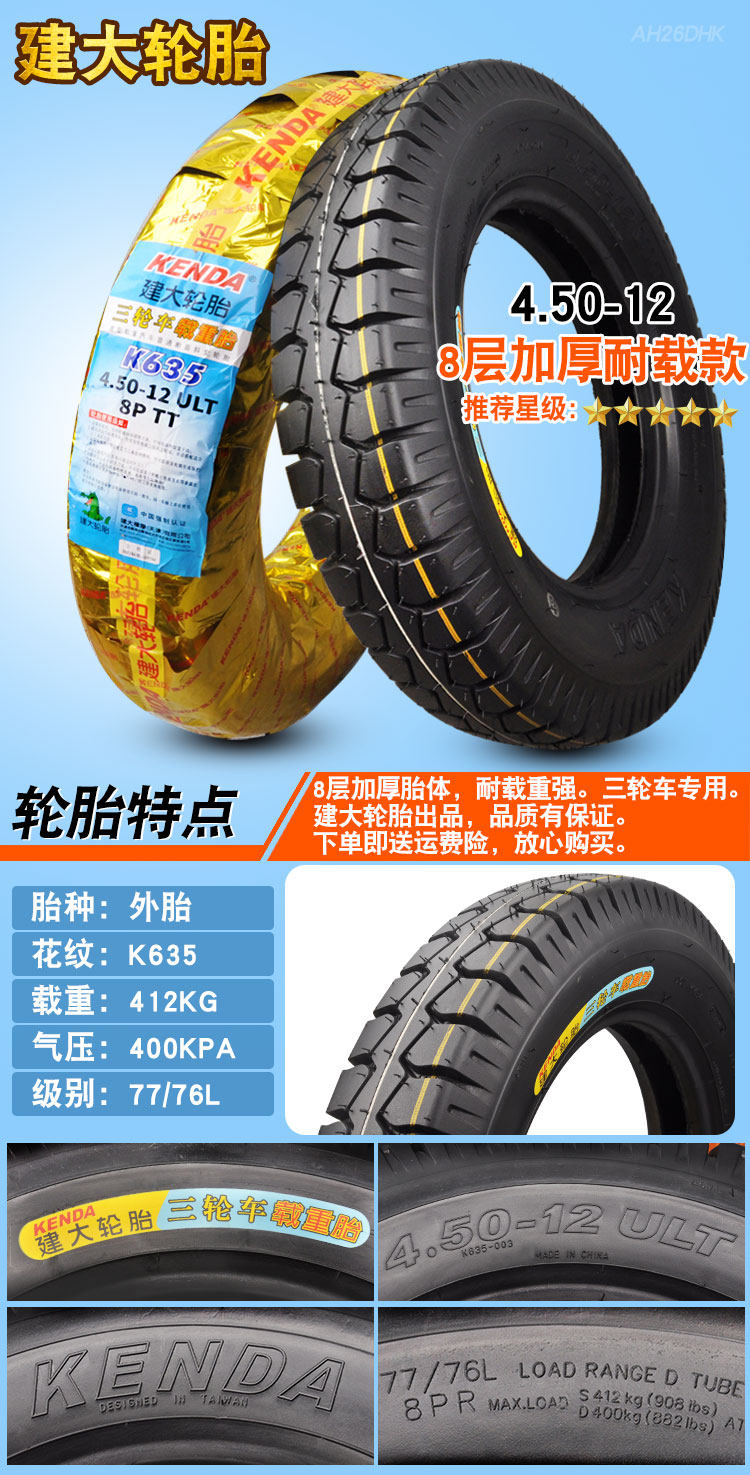 Трехколесные шины Jianda 3.50/4.00 /50/5.00-12 Электрические стальные шины 400 1 12