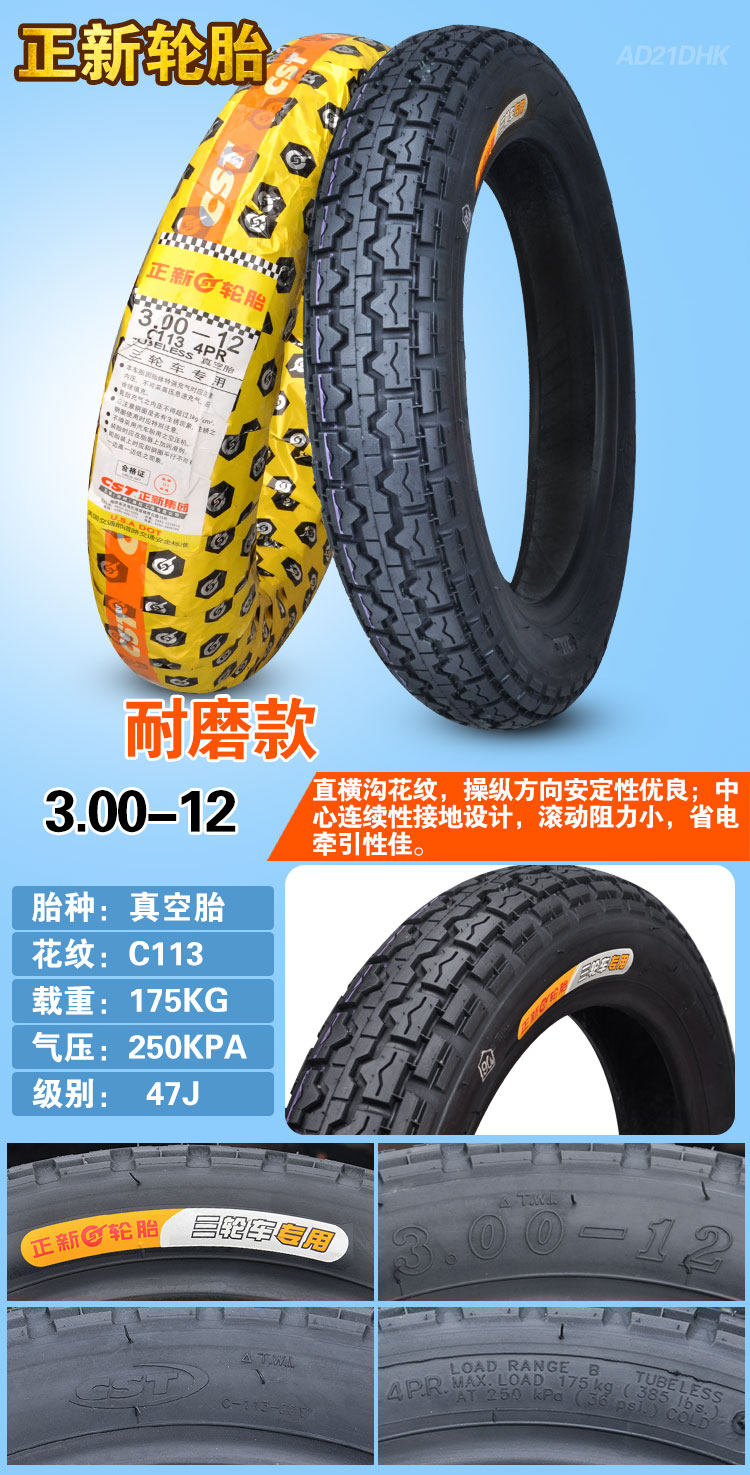 Zhengxin Tire 3.00/3,50/3,75-12 One Electric Triocles Motorcycle Tire
