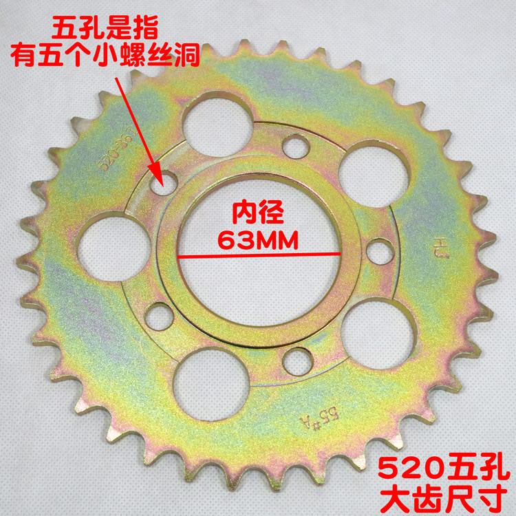 Перед покупкой измерьте большой стиль зубов и размер внутреннего диаметраВнутренний диаметр 63 мм.Цепь и маленькие зубы стандартизированы продавцом.