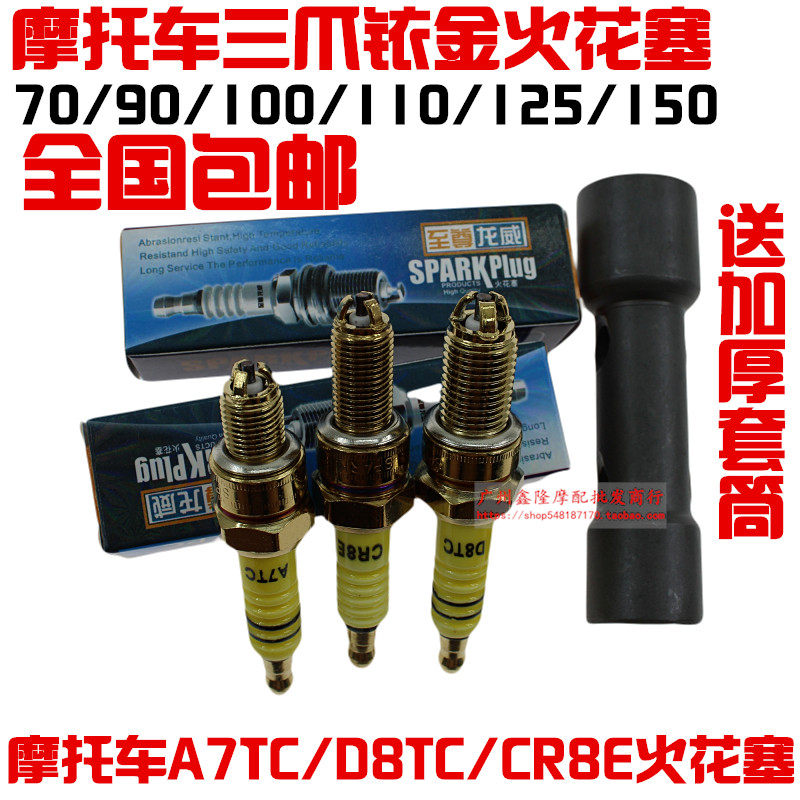 Бесплатная доставка Мотоциклевая свечи зажигания Триод/тройные когти Золотая свеча зажигания 70/90/110/125/150 Педали изогнутой луче