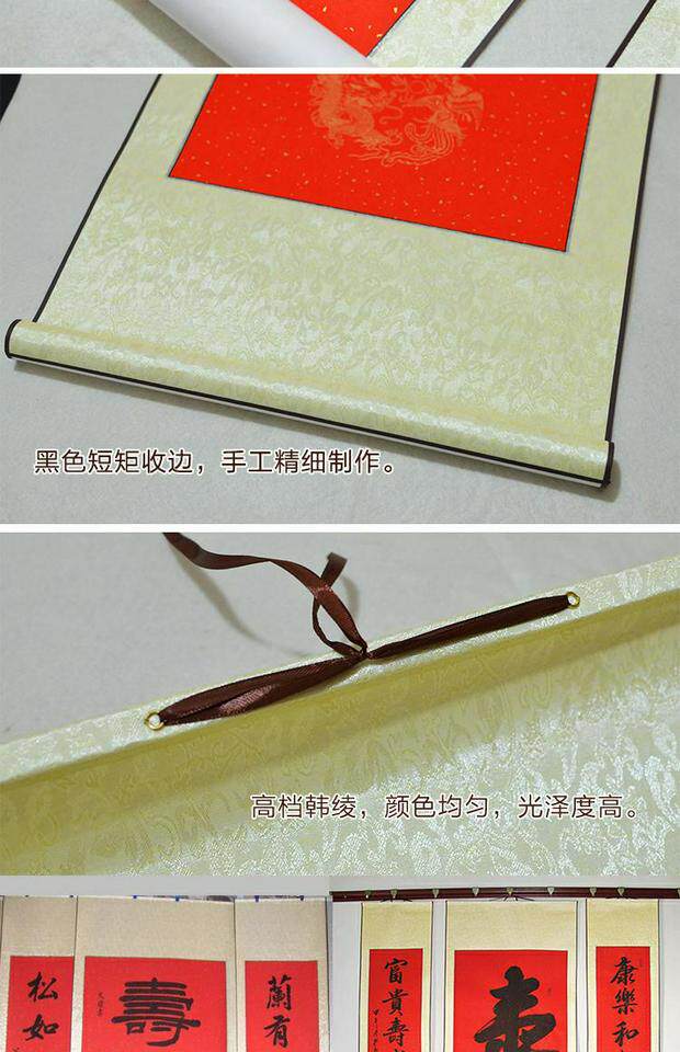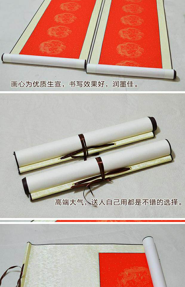 Пустой свиток Xuan Paper Painting Shaft четыре фута тысячи -летящие красные семи -махарактерные драконы и пара Феникса, каллиграфия и рисовать Свиток красный