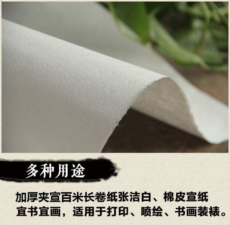 Характеристики ребенка: утолщен 100 метровДлинный выбор рисовой бумаги превосходного сырья,Бумага жесткая, толстая, белая и элегантная, чернила однородные, а чернила увлажняют хорошие.При написании, ощущение ручки не искажается, не плавает, уровень ясен, старение устойчиво,Подходит для большой масштабной пейзажной живописи китайской живописи каллиграфии.Нет проблем с монтажом. Это ваша идеальная крупная бумага для создания.