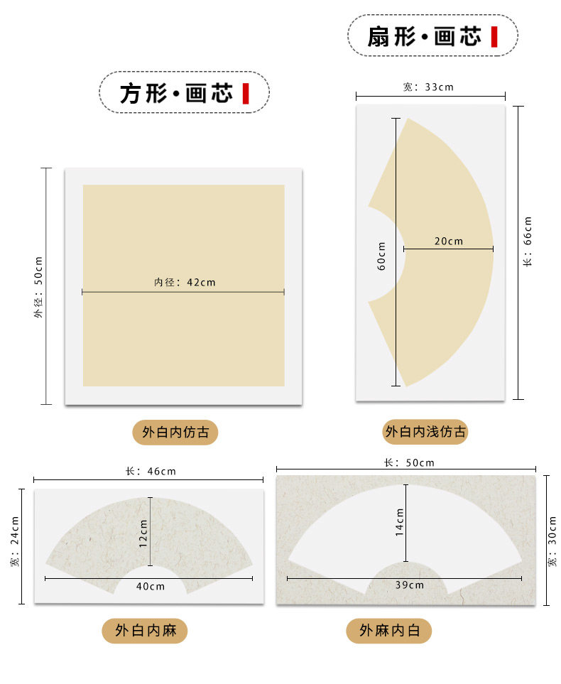 善琏湖笔 Китайская картина Утолщенная рисовая бумага бумага бумага пустая живопись бумага для сырой кисти каллиграфия, каллиграфия и покраска вентилятор -для практических тренировочных работ рисовых бумажных линз, одаренные линии рисования