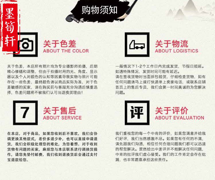 | Цветная бумага, цвет: | Белый шенгксуан (чернила чернила быстро расцветает, Белая половина жизни (медленное поглощение чернил, Белая Юнма делает продвижение (не соси чернил, Античный цвет полужицы (медленное поглощение чернил |