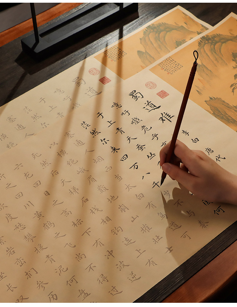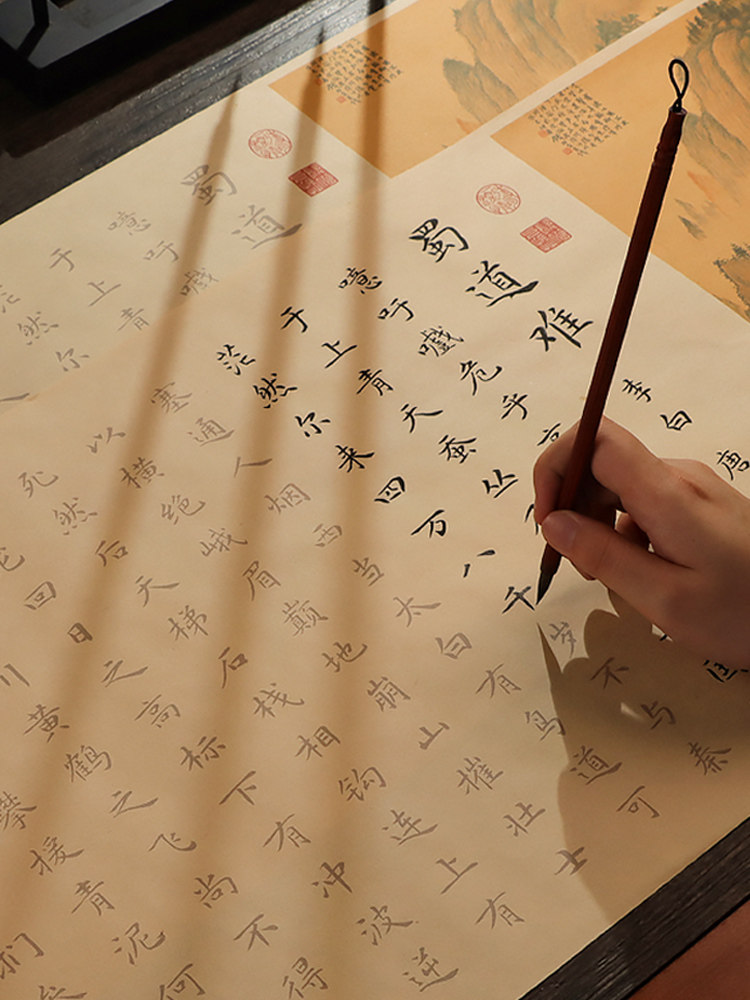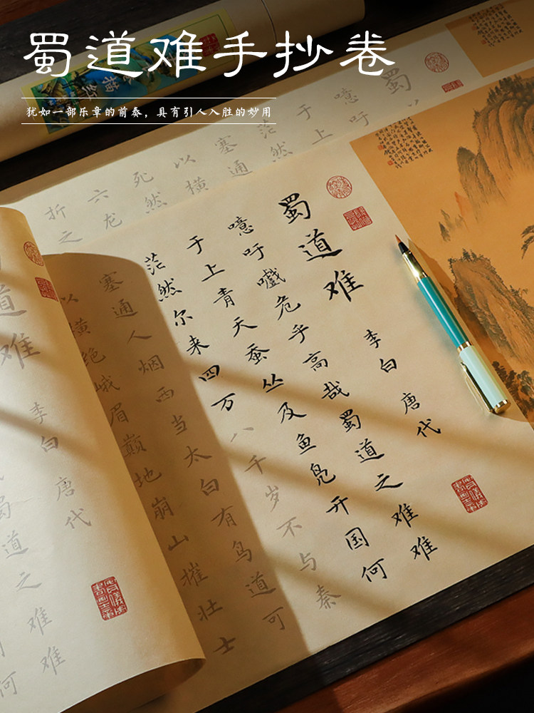 Шу-Роуд трудно проследить, красный маленький обычный шрифт, небольшой длинный свиток, кисть в стиле перьевой ручки Ли Бай, ручная копия красной копии, имитация древнего китайского обычного письма Чжэнмин, подарочная коробка с тетрадью на рисовой бумаге, набор для начинающих по каллиграфии