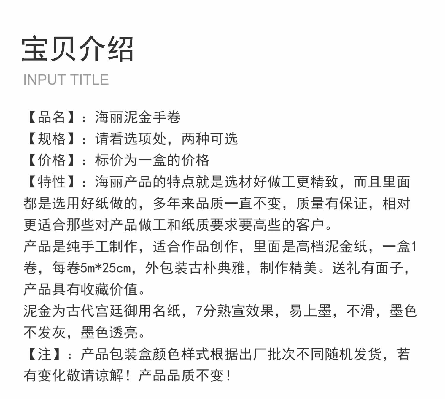 Haili смешанный Xuan Xuanchang Mud Golden Hand Roll 5m*25 см бокс боктивные белые свитки Каллиграфия и каллиграфия