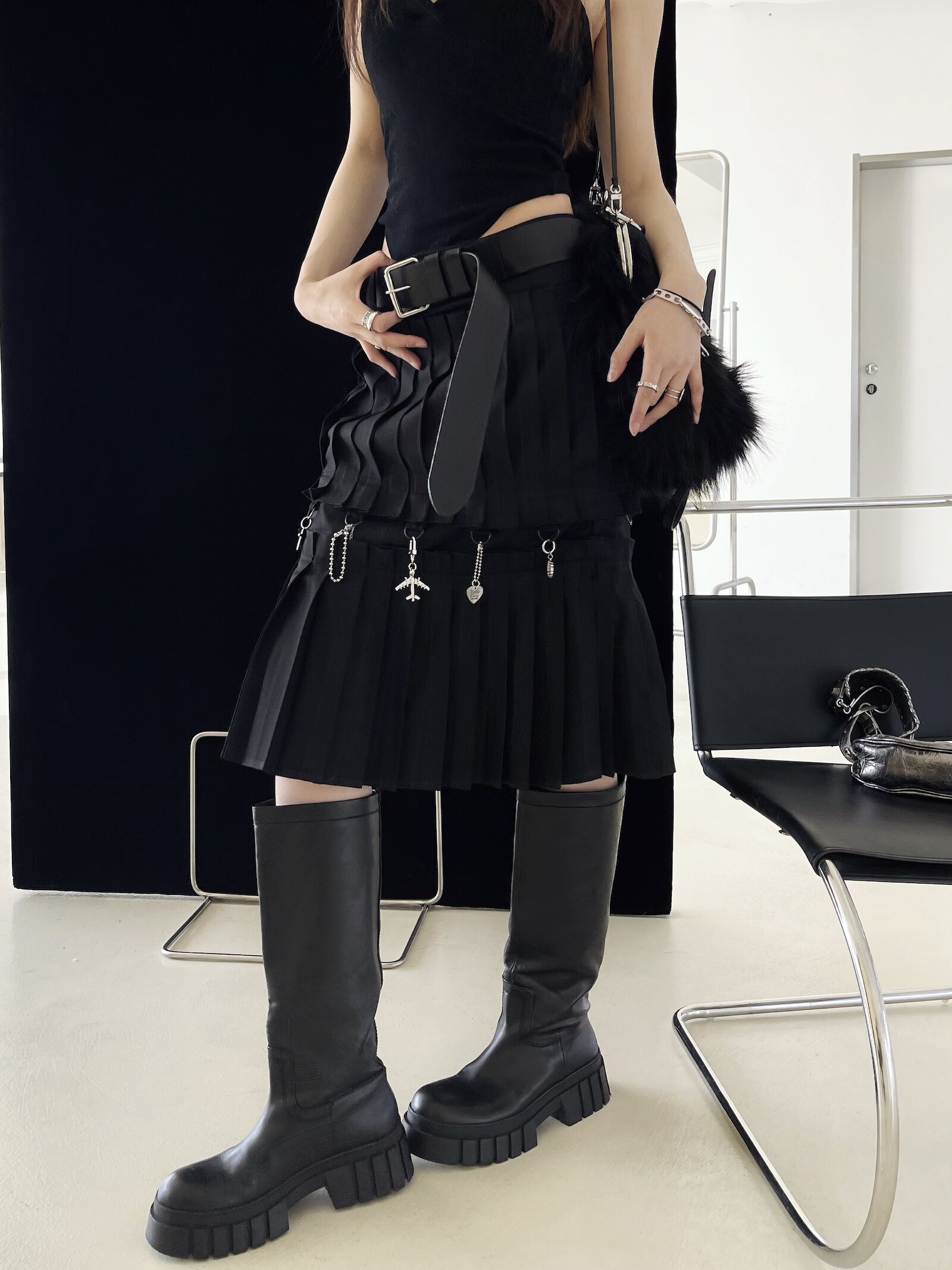 Оригинальная подвеска, черная юбка, А-силуэт