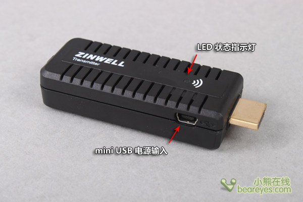 Сначала подключите передатчик WHD100TблокнотПорт HDMI сверху (электричество от USB -интерфейса)