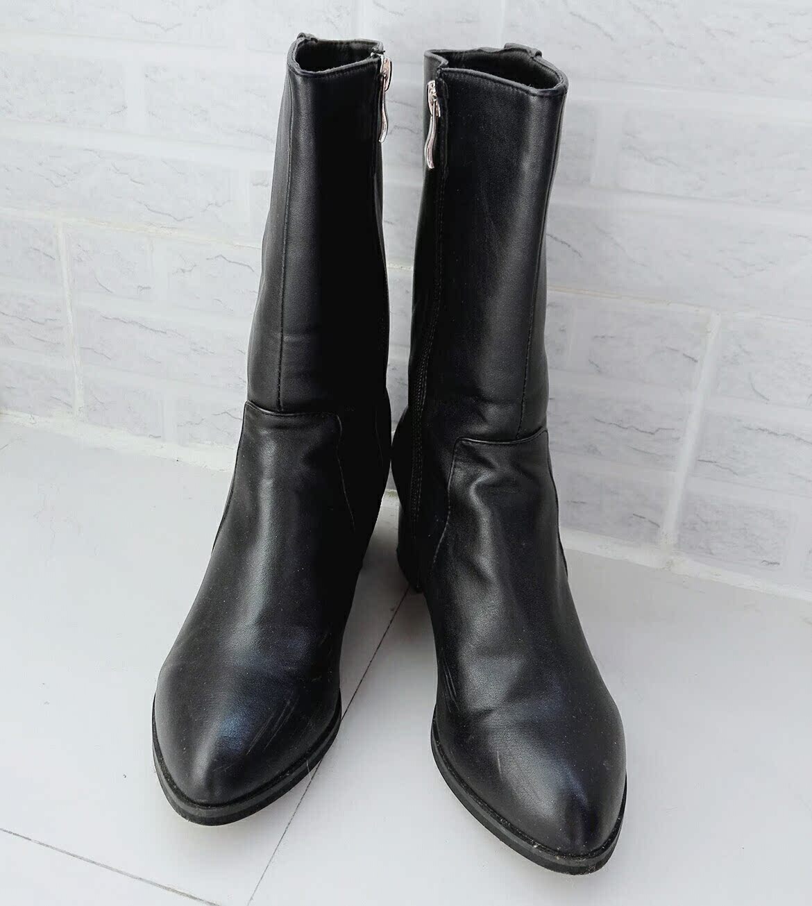 Кожаные черные короткие сапоги, средней длины