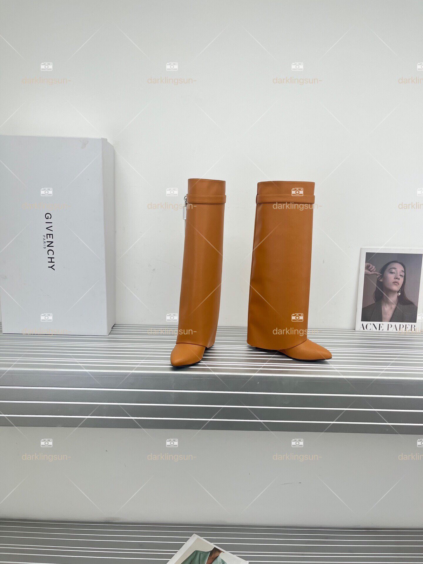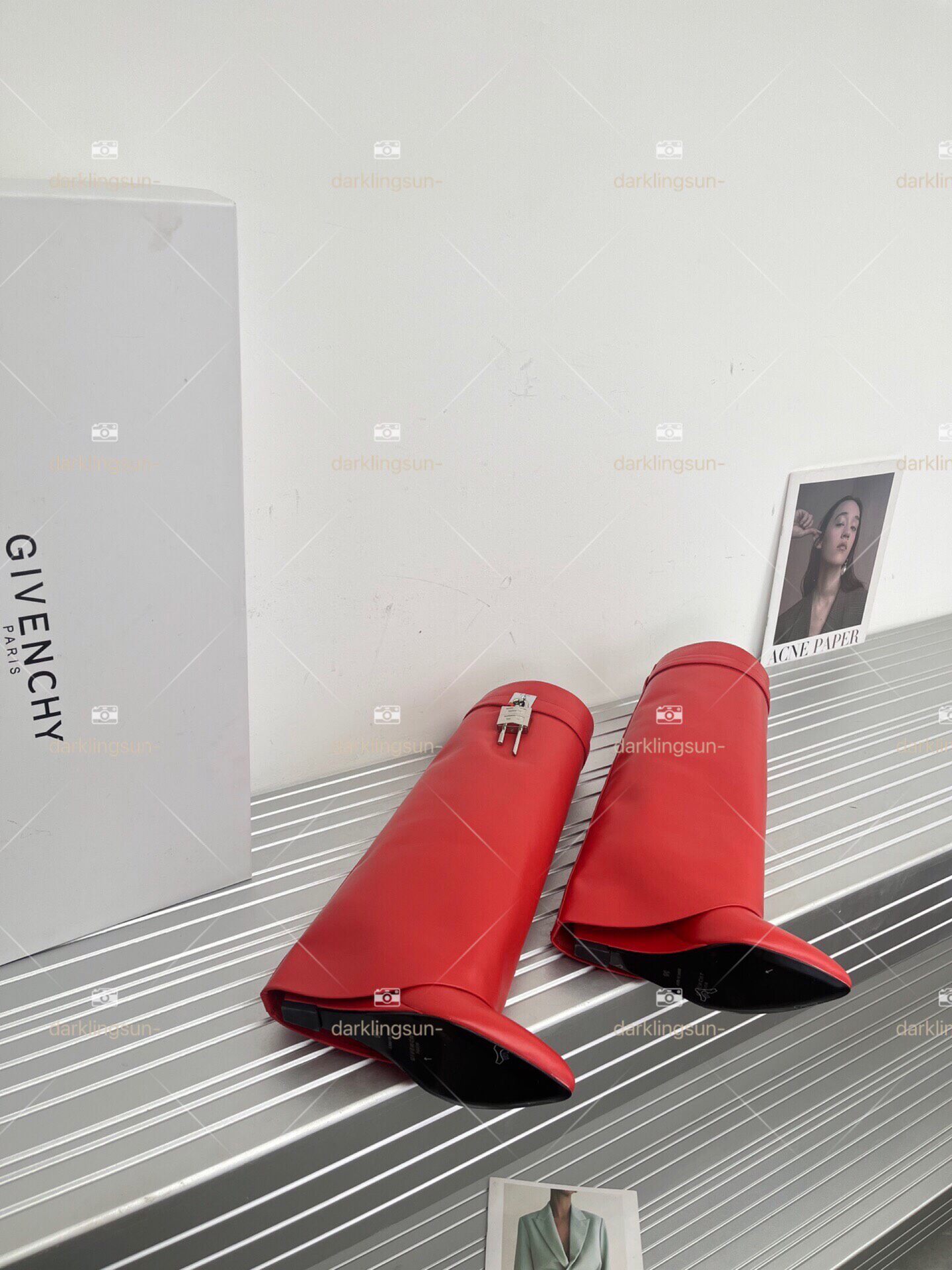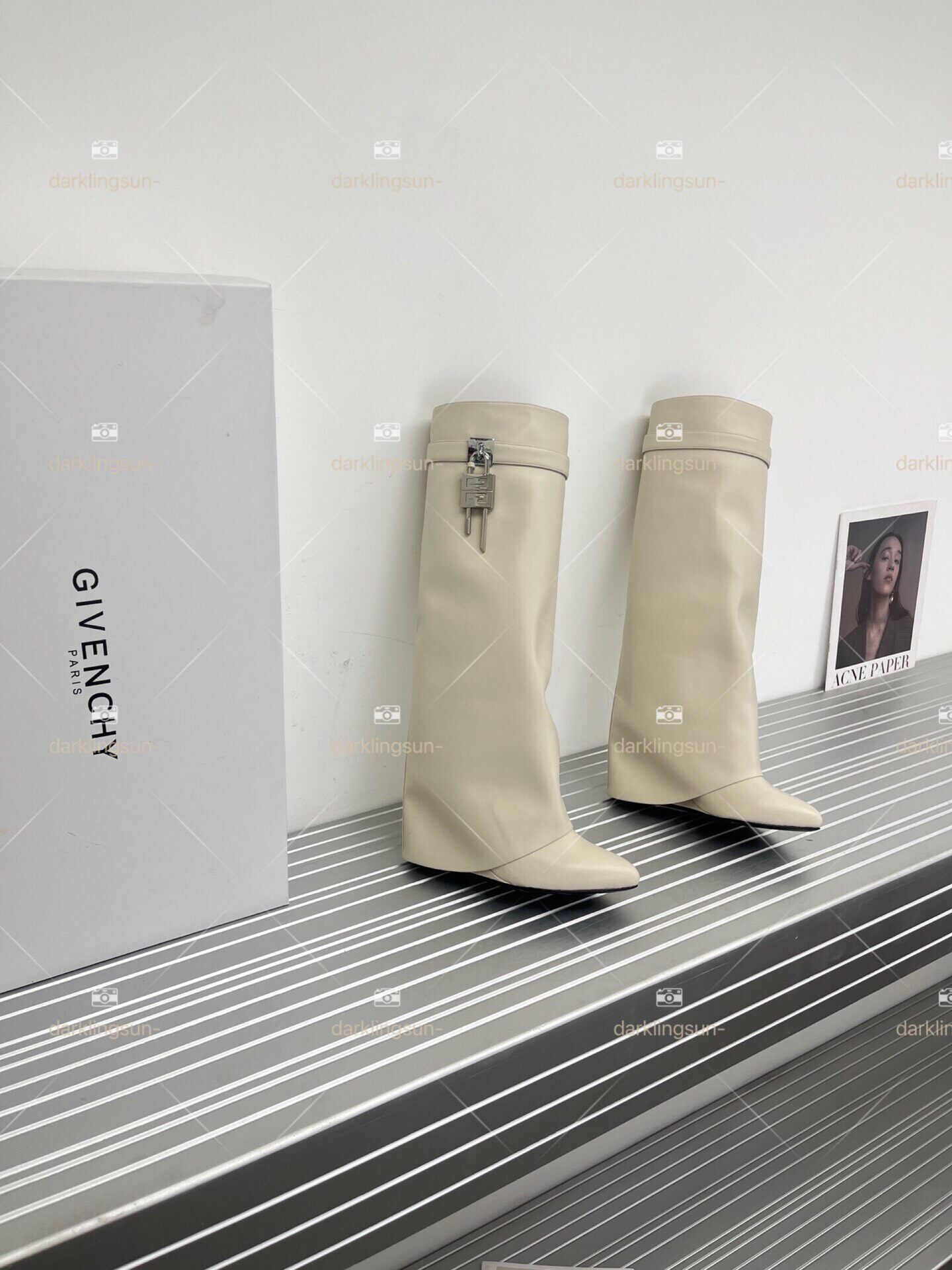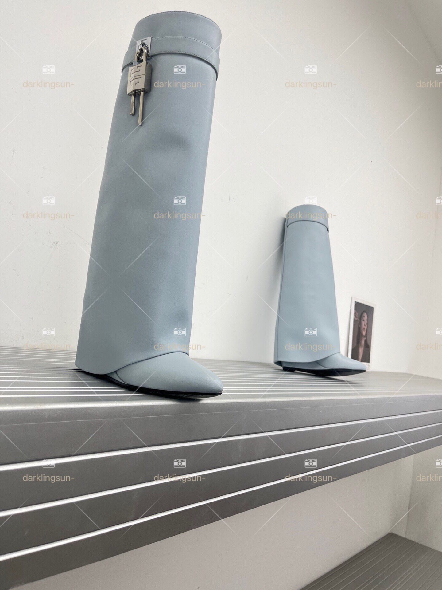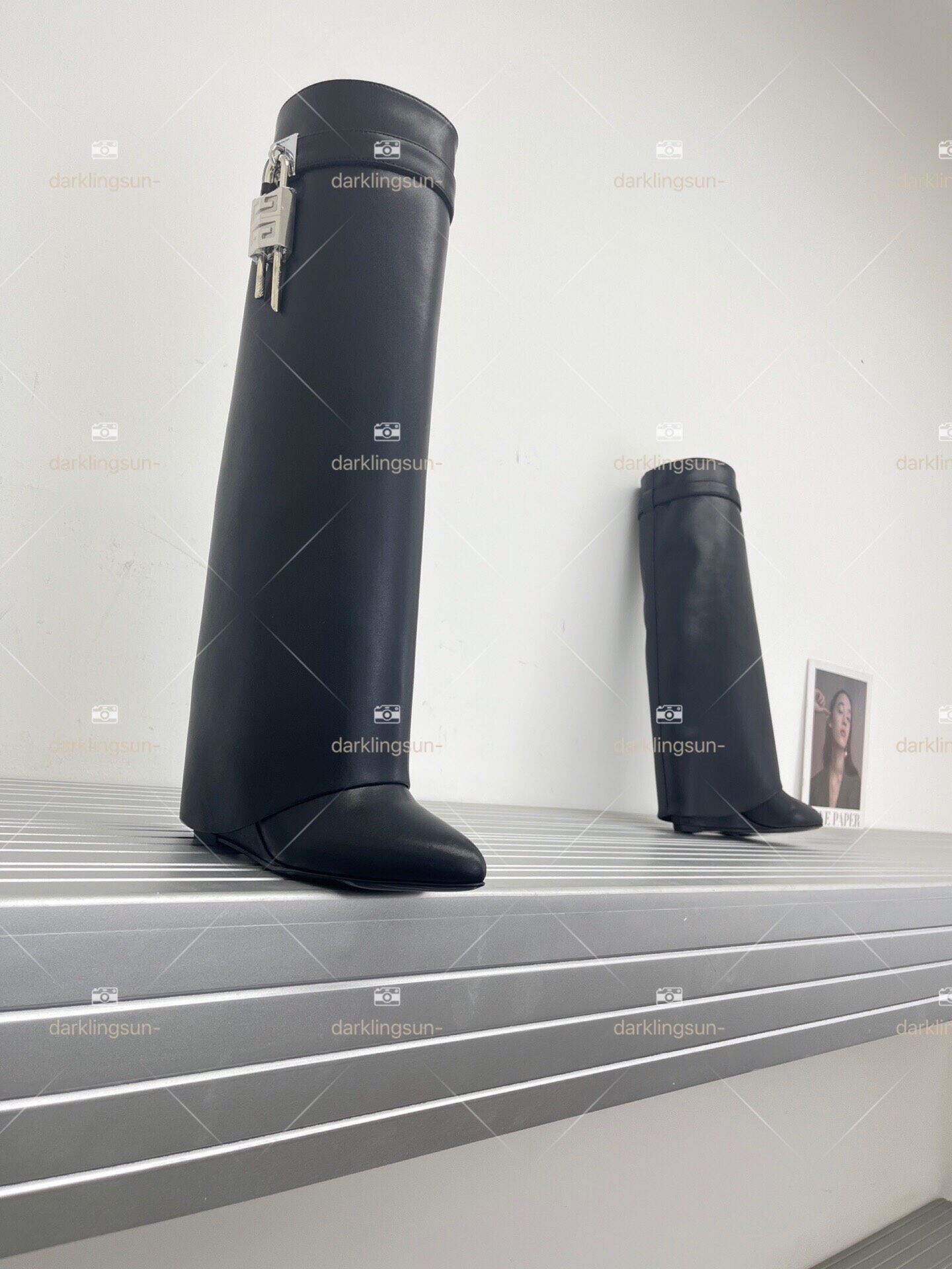 Замок, высокие сапоги, металлическая дизайнерская булавка, средней длины