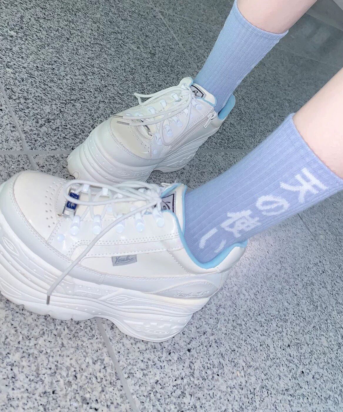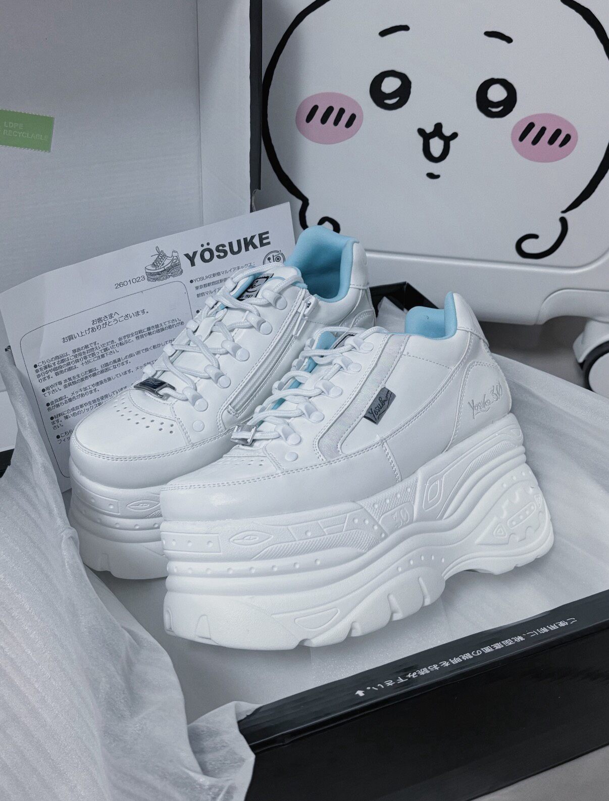 Туфли Yosuke на толстой подошве, белые и синие, полные размеры, совершенно новые и оригинальные, оригинальная коробка.