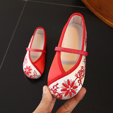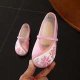 Родитель -детская старая пекинская детская ткань обувь девочка обувь Hanfu Национальная вышивка ветря