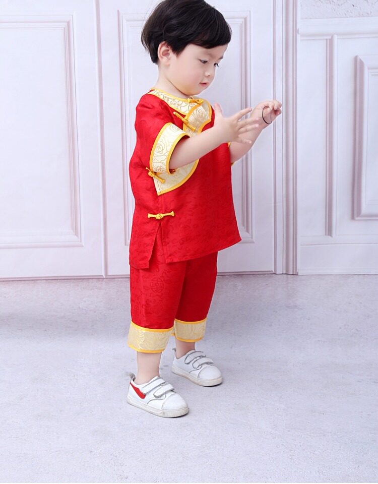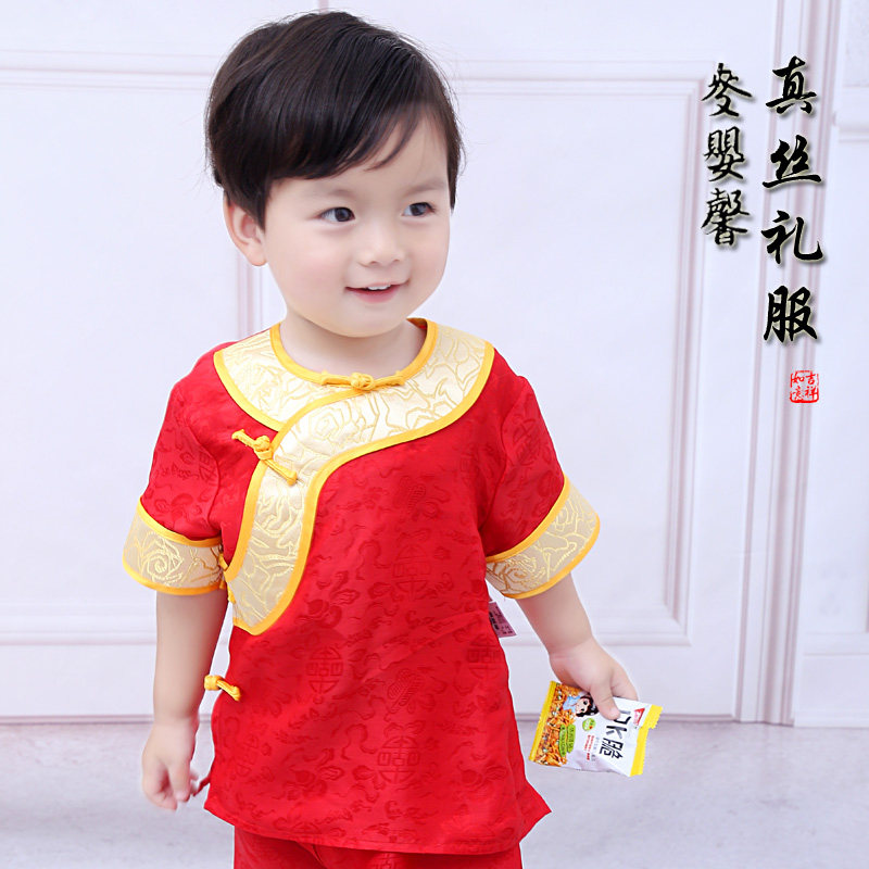 Шелковая детская летняя одежда ручной работы подходит для мужчин и женщин, нарукавники, детский комплект, платье, короткий рукав, подарок на день рождения