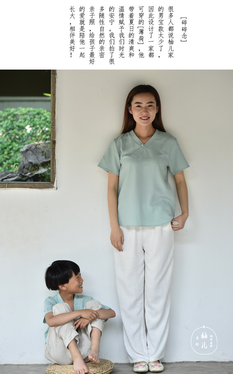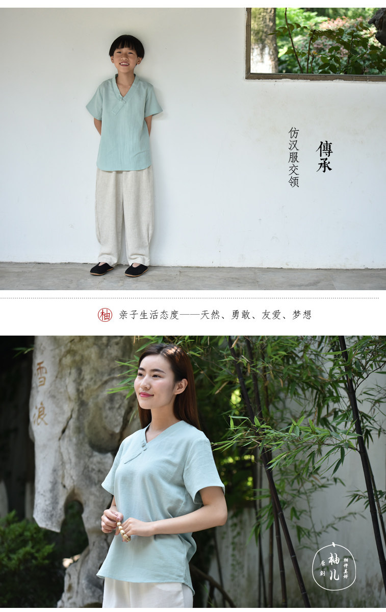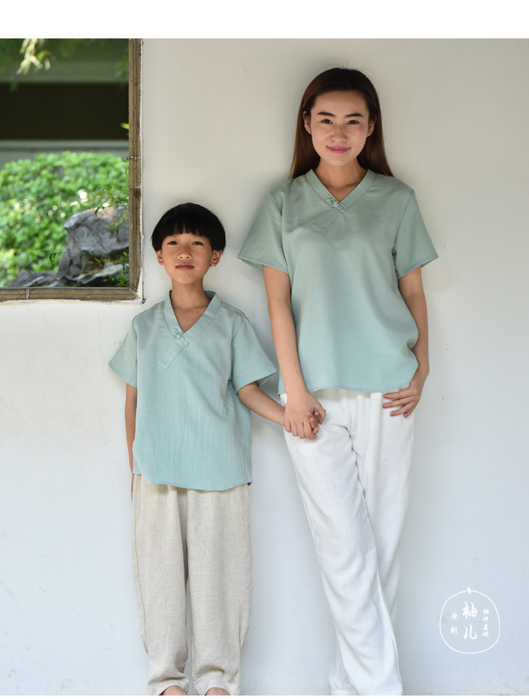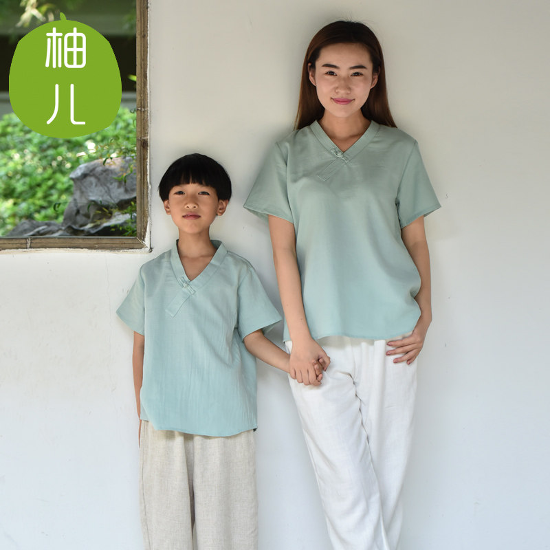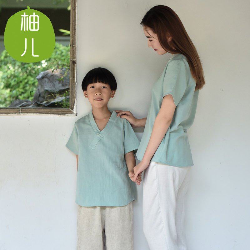Детская мятная ретро летняя футболка с коротким рукавом для мальчиков, детская одежда, из хлопка и льна, китайский стиль, семейный стиль