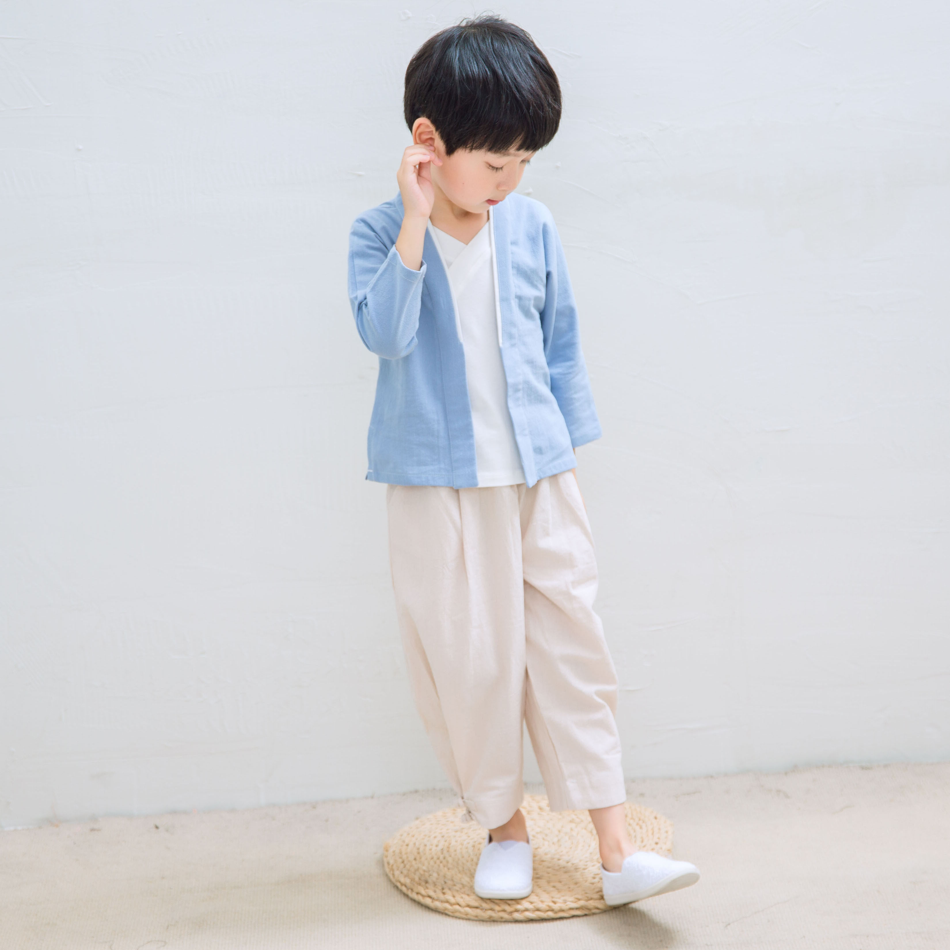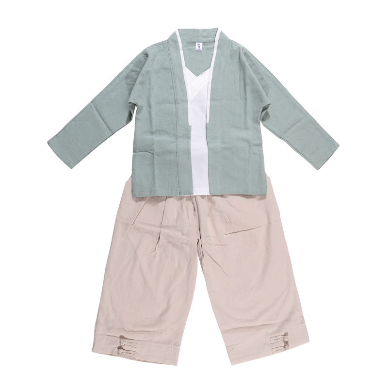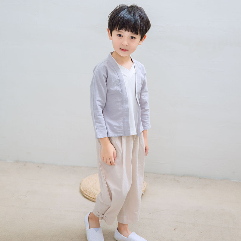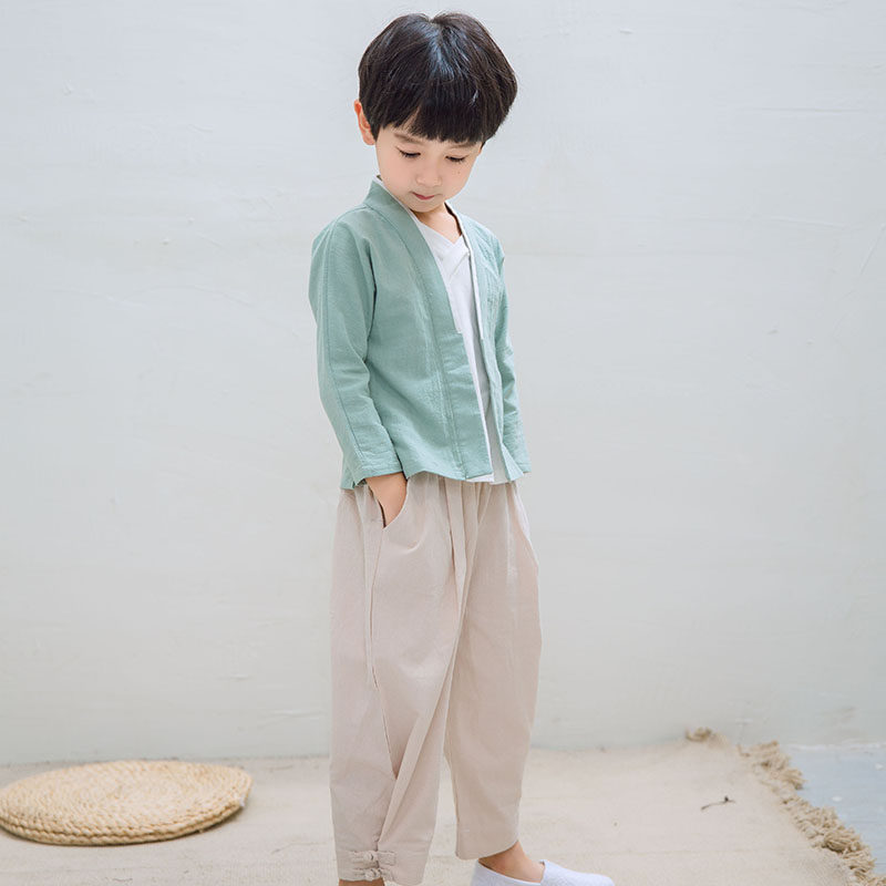 Детское ханьфу, костюм мальчика цветочника, осенний ретро этнический комплект, из хлопка и льна, китайский стиль, детская одежда