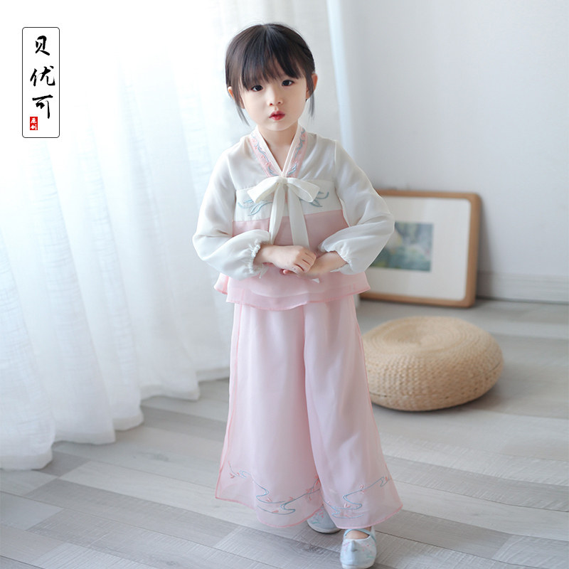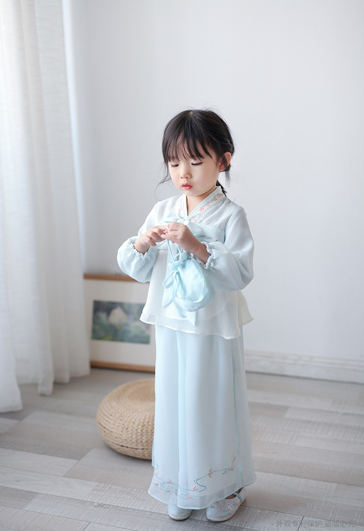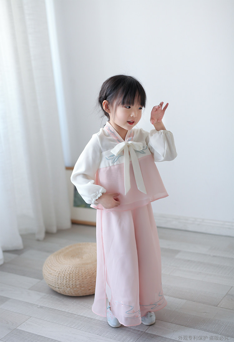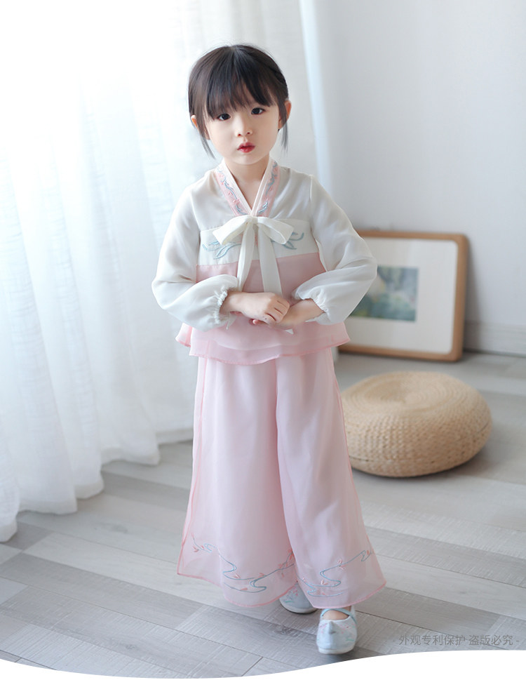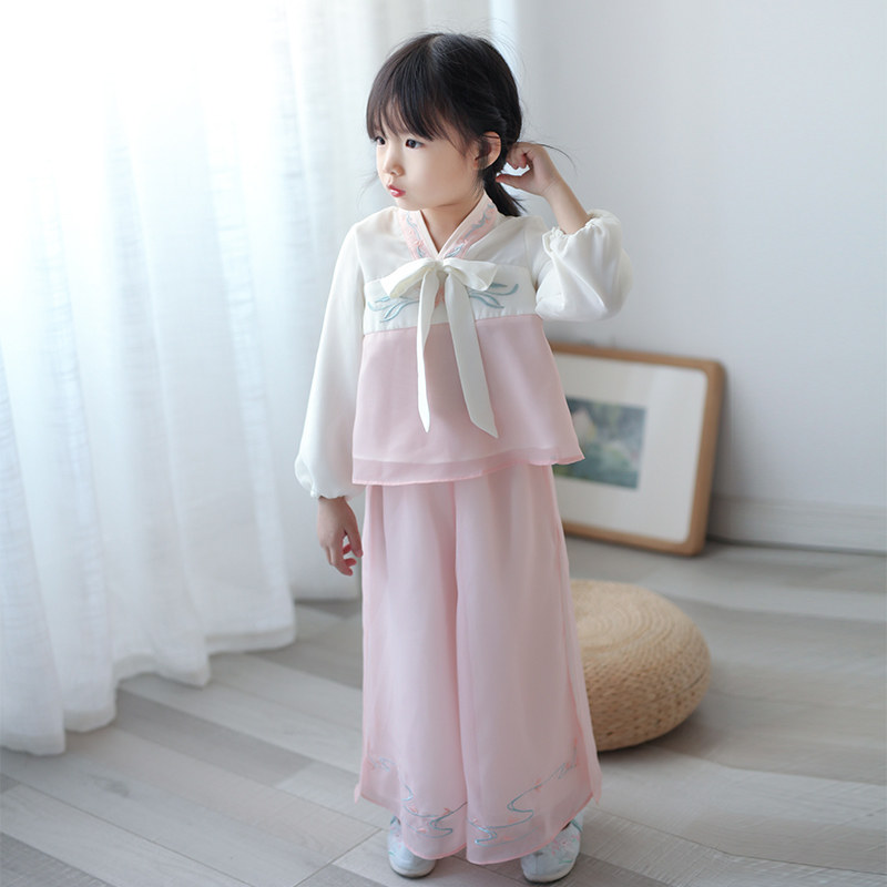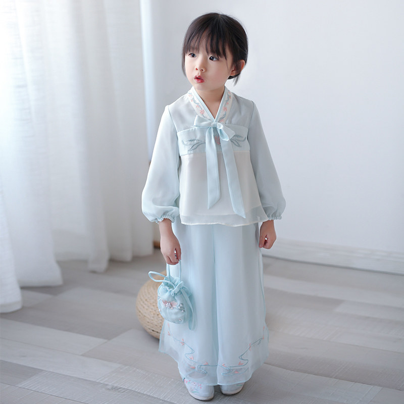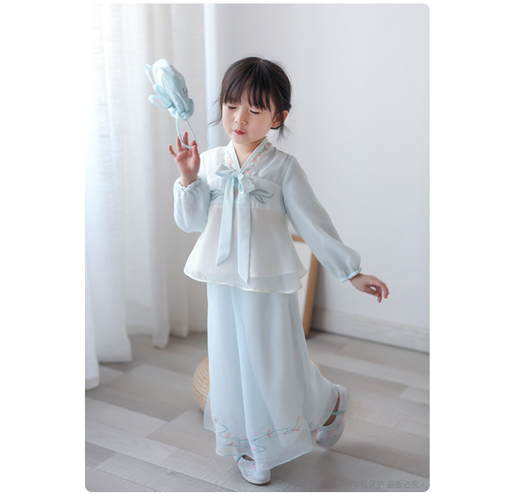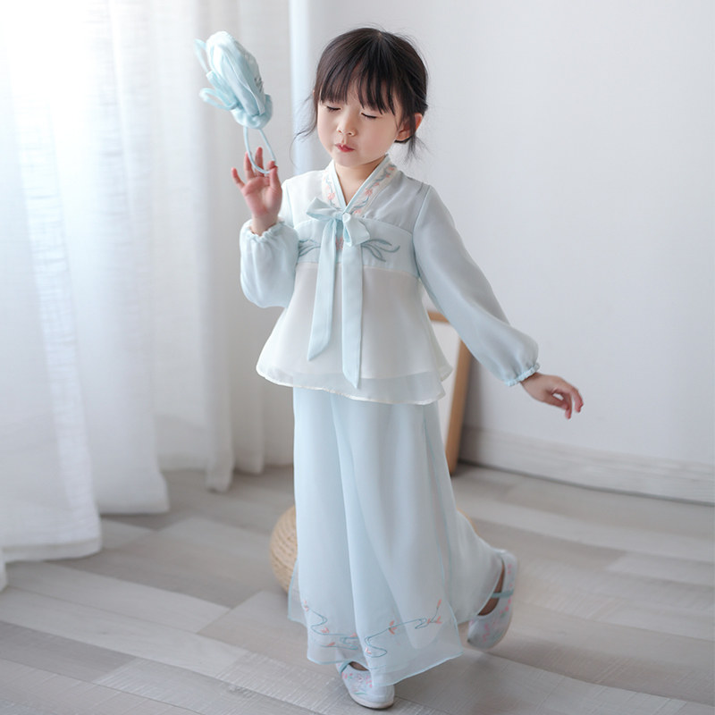 Ханьфу для девочек, шифоновый осенний комплект, китайский стиль, с вышивкой