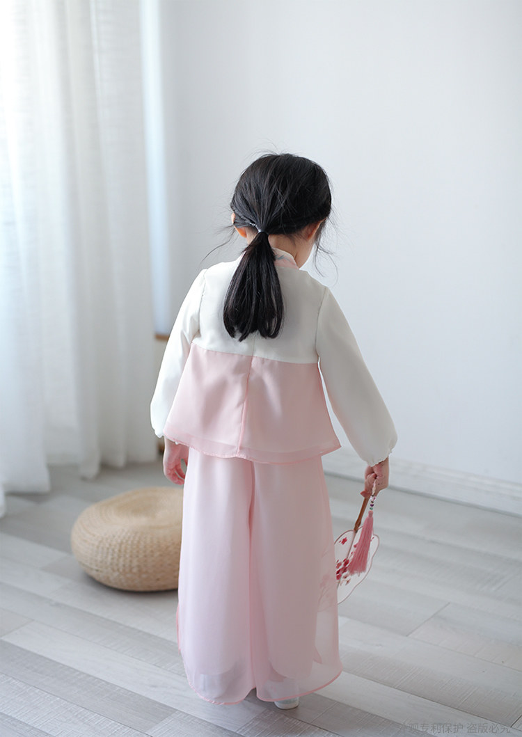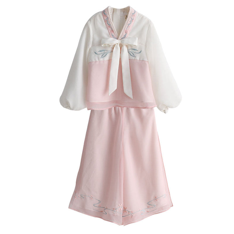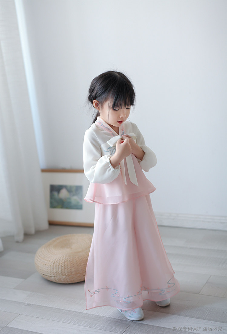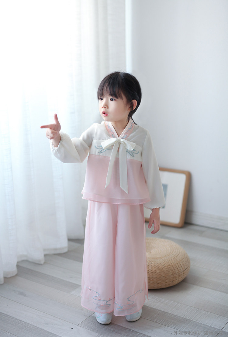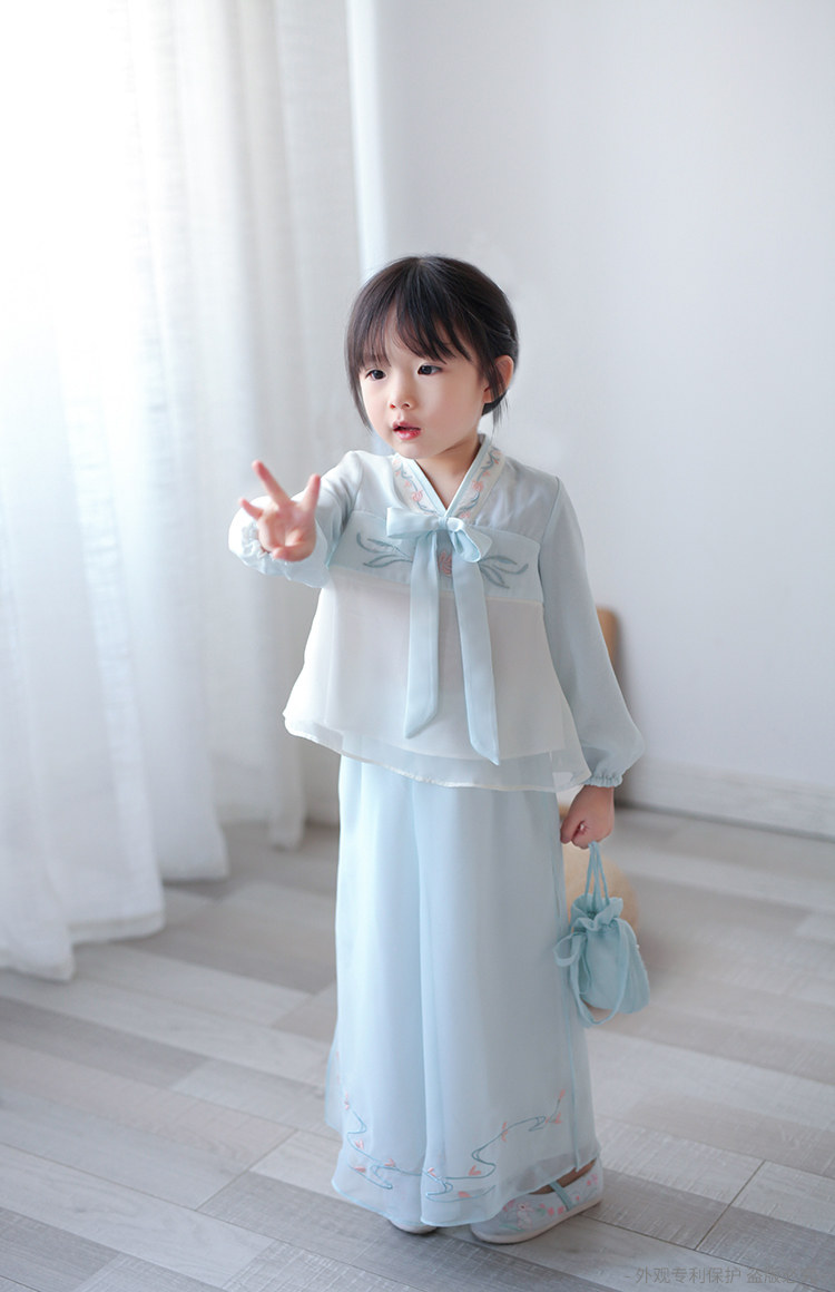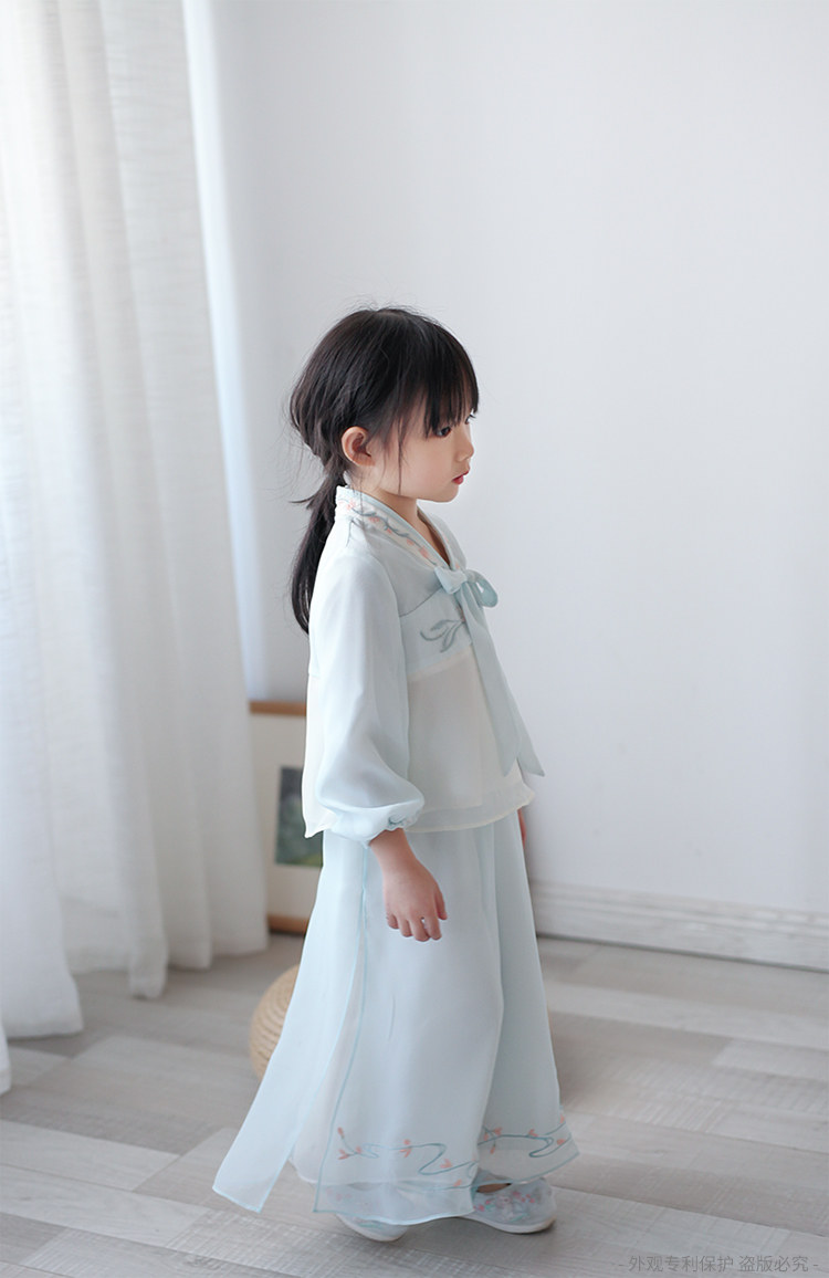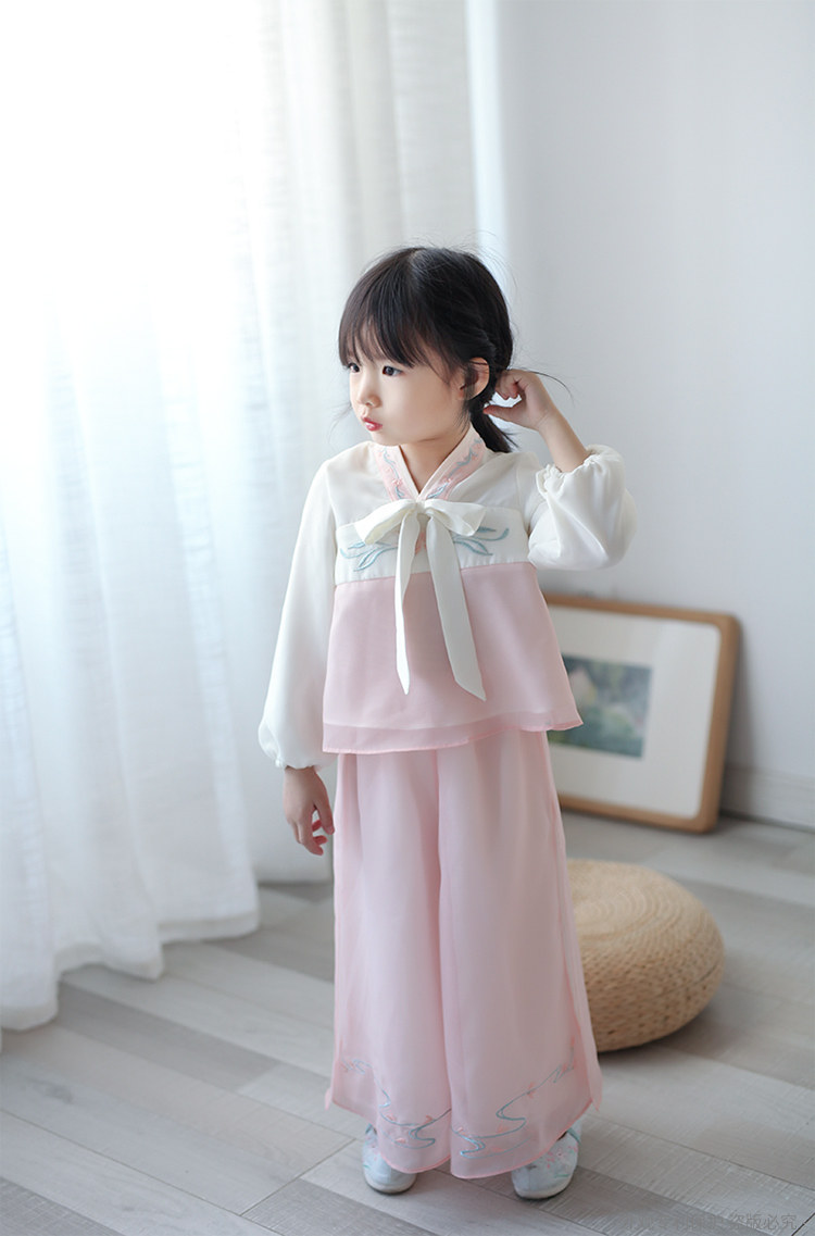 Ханьфу для девочек, шифоновый осенний комплект, китайский стиль, с вышивкой