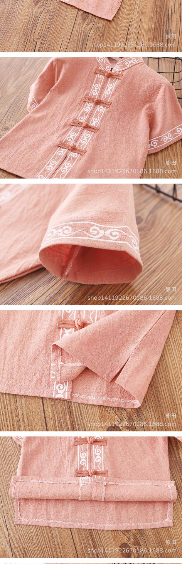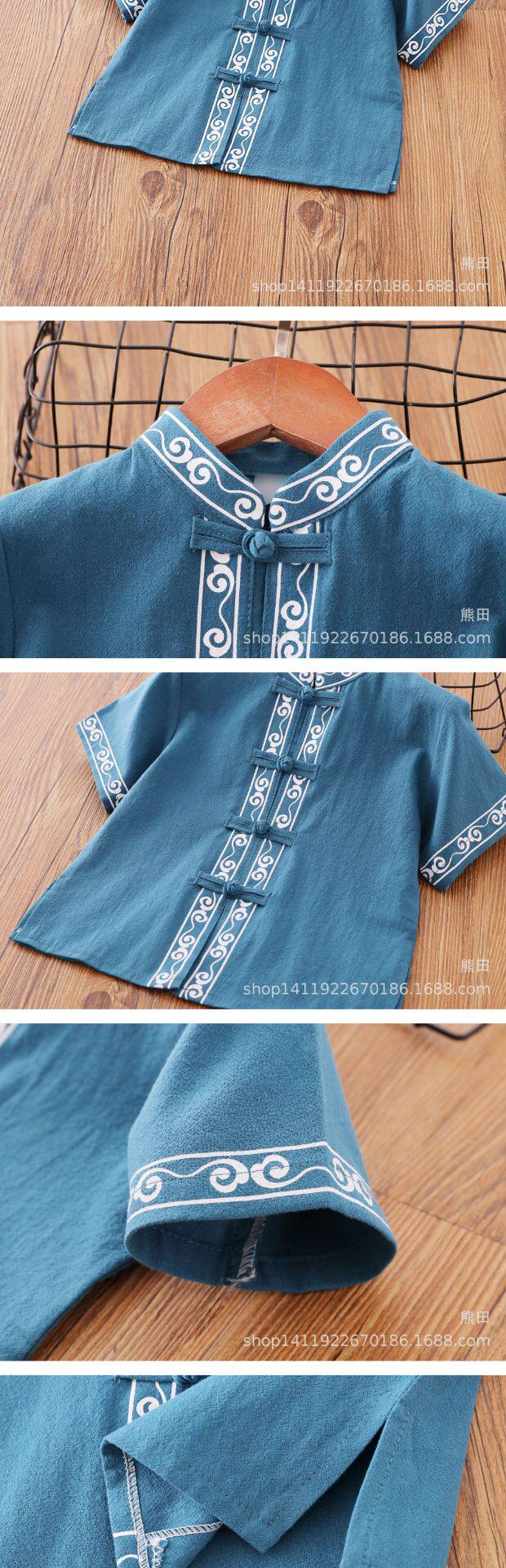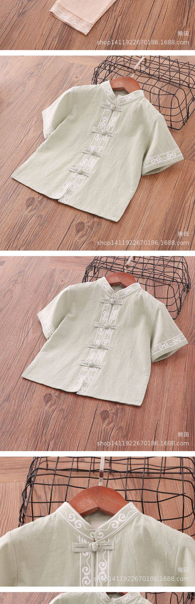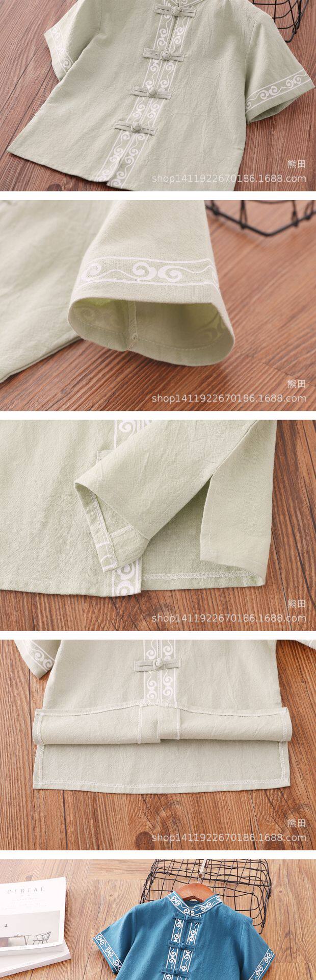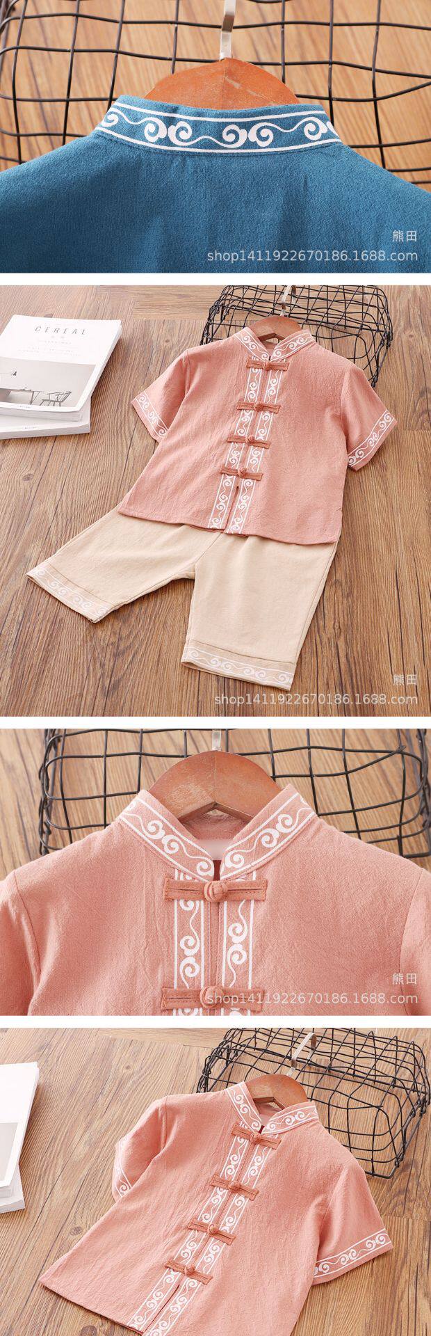 Детское ханьфу для мальчиков, красное платье, китайский стиль, короткий рукав, детская одежда, из хлопка и льна