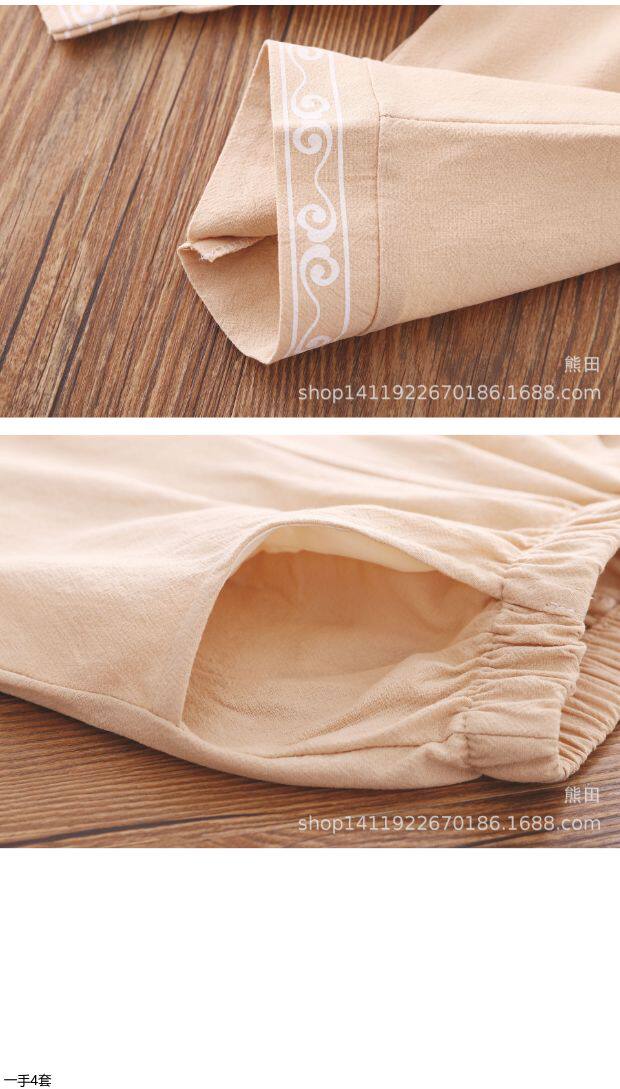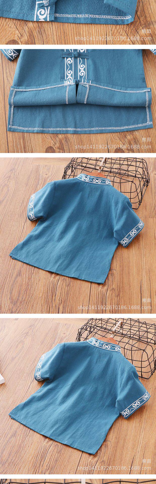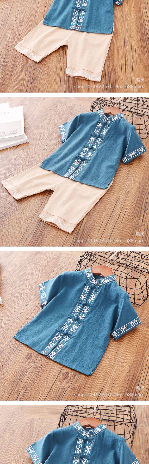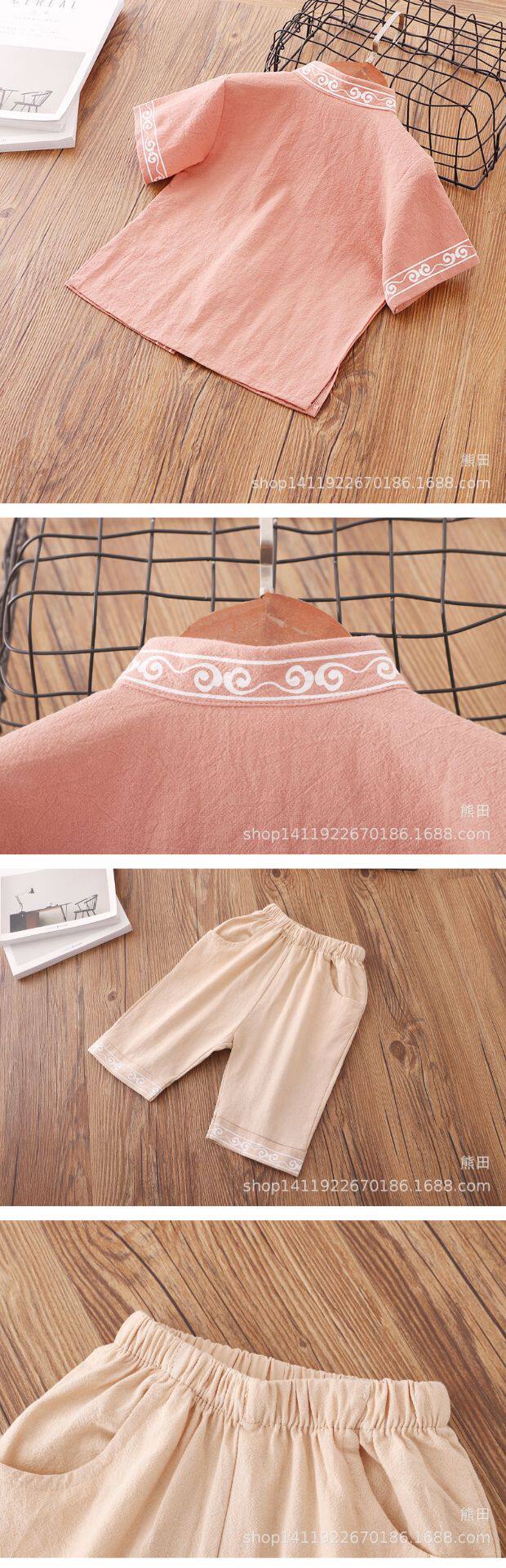 Детское ханьфу для мальчиков, красное платье, китайский стиль, короткий рукав, детская одежда, из хлопка и льна