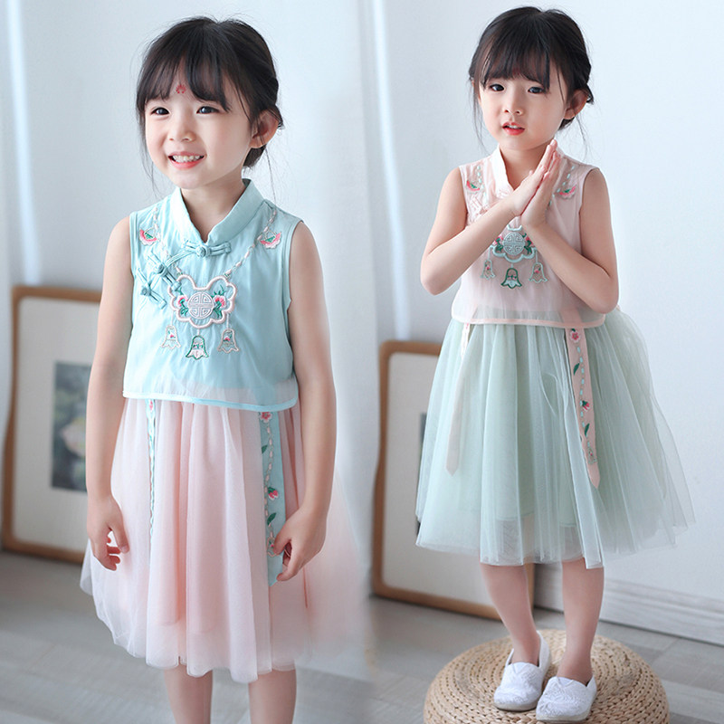 Ханьфу, юбка для девочек без рукавов, китайский стиль