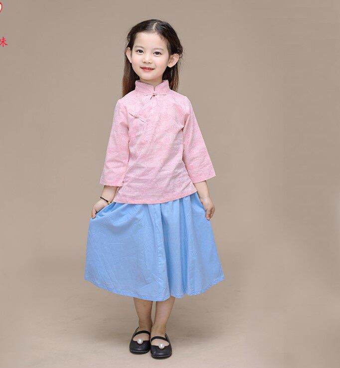 Осенний ретро комплект, свадебное платье, форма, юбка на девочку, китайский стиль, из хлопка и льна