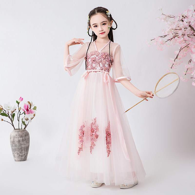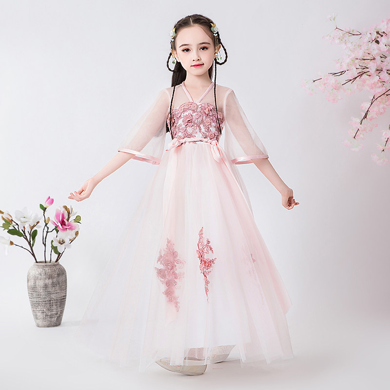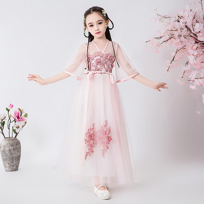 Детское ханьфу, платье, комплект для школьников и студентов, летняя одежда, китайский стиль, 12 лет