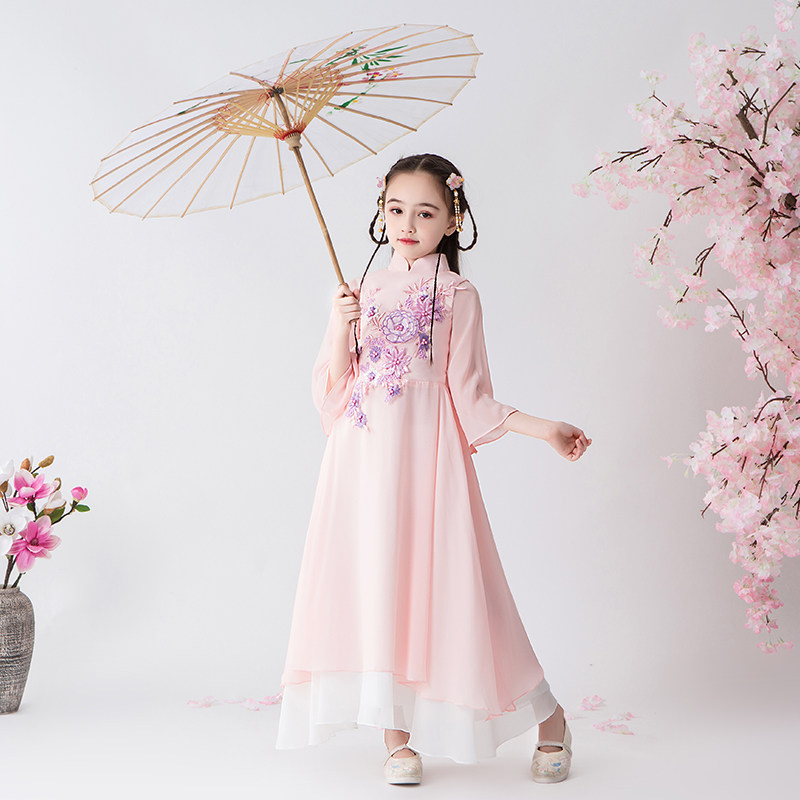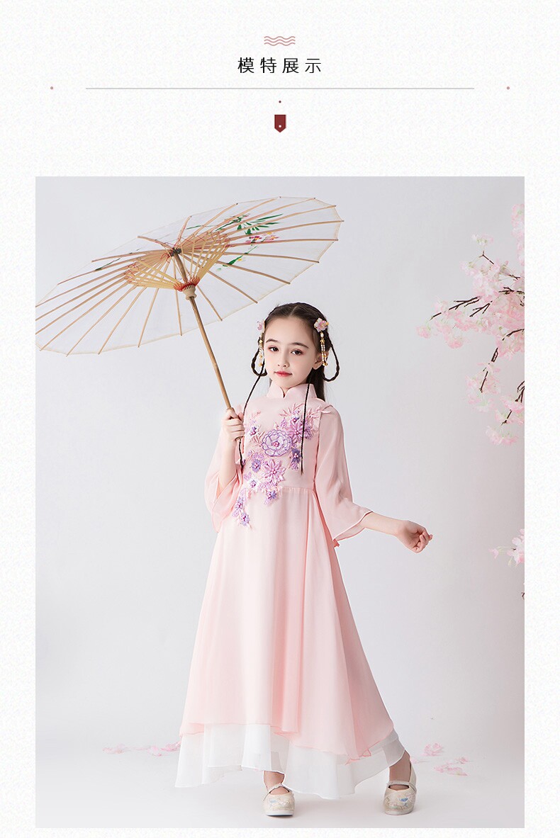 Детское ханьфу, ципао, костюм, китайский стиль, короткий рукав