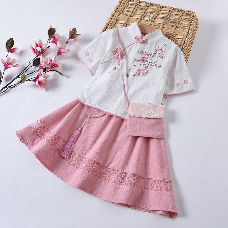 Детское летнее ханьфу, юбка, комплект, ципао для школьников, китайский стиль