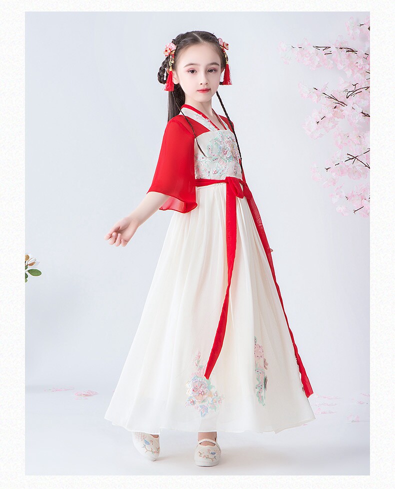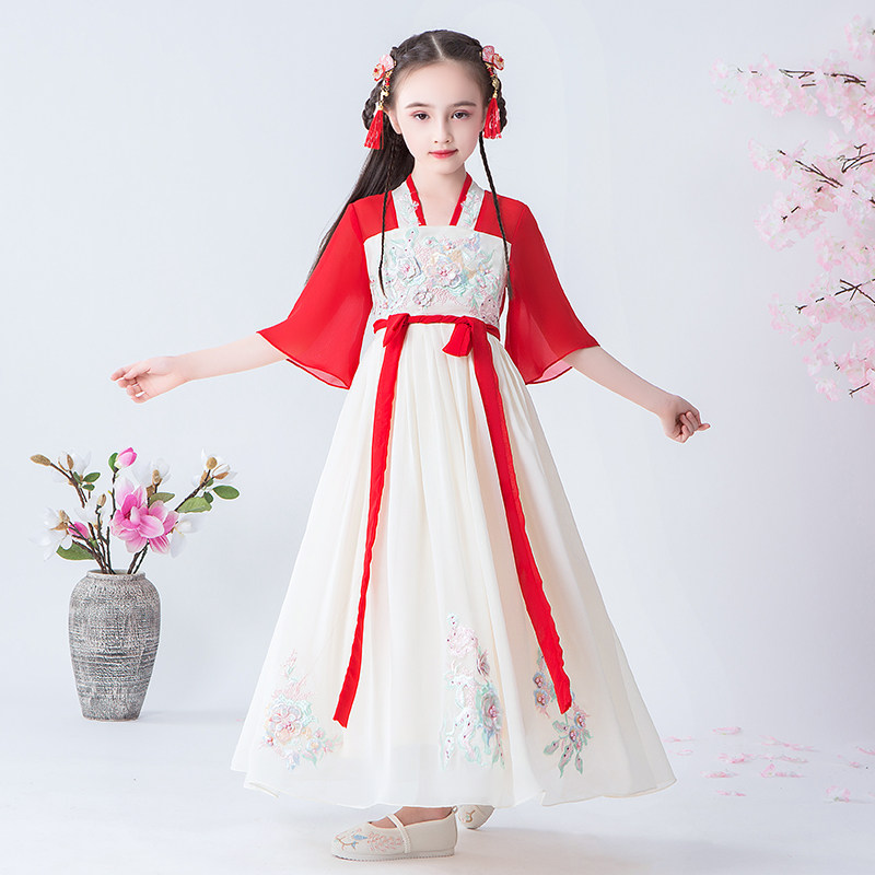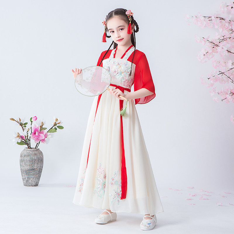 Ханьфу, детское платье, детская осенняя демисезонная юбка, китайский стиль, короткий рукав