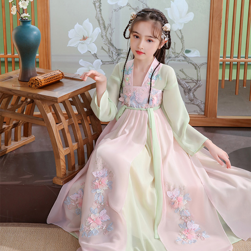 Ханьфу, детское тонкое платье, летняя одежда, 12 лет, китайский стиль