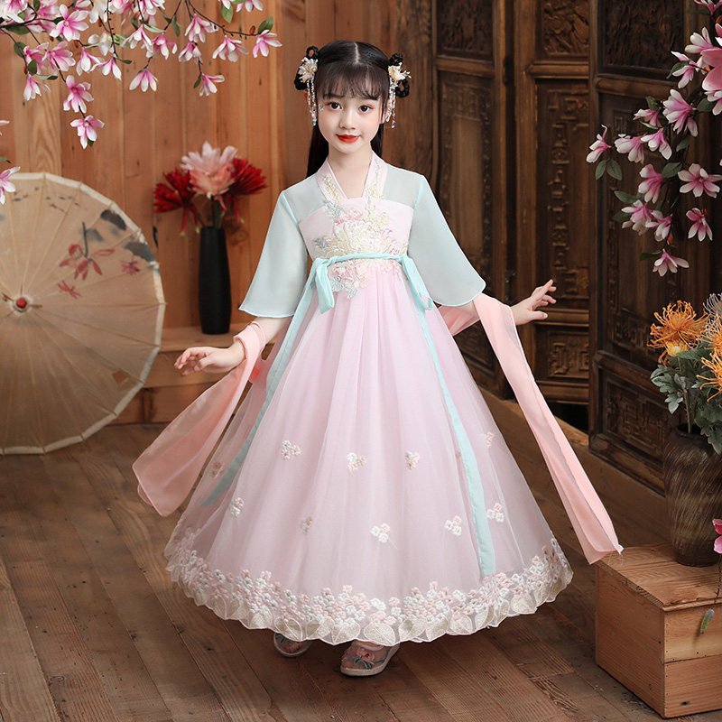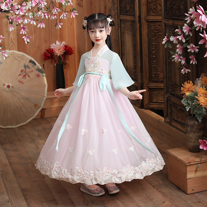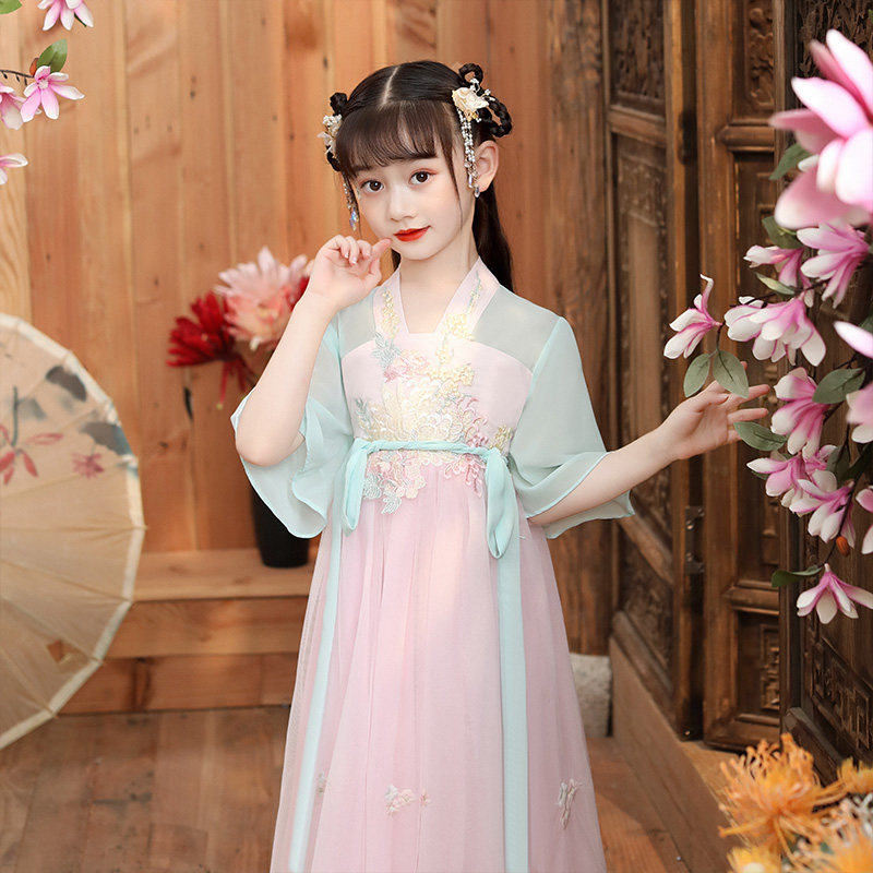 Ханьфу, платье, юбка, детская летняя одежда, тонкий наряд маленькой принцессы для школьников и студентов, китайский стиль